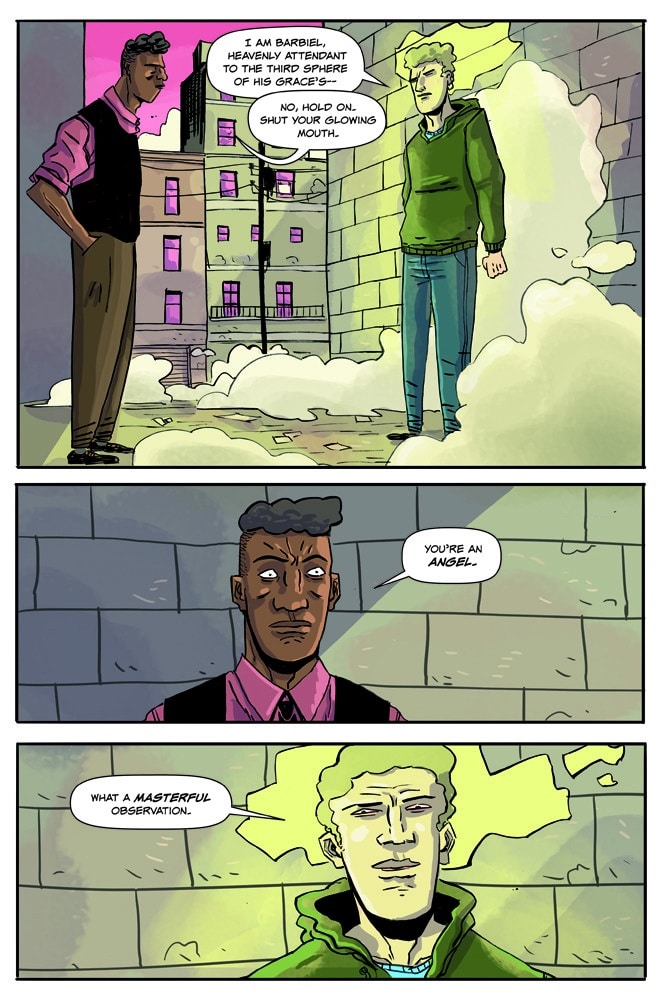 Comedian and Comedy Film Nerds cohost Chris Mancini breathes new life into fantasy realms with adept humor artist Fernando Pinto! Decades ago, Jason saved the world of Elvenwood from the witch queen Nexis as the Child Knight. Today, he’s an unhappy manager of a comics store, where his disbelieving coworkers have to hear his ridiculous tale over and over. When the denizens of Elvenwood return to seek Jason’s help again, it turns out it’s all true, but will Jason be the hero he once was? Or will he just make things worse because he grew up to be a complete jackass?