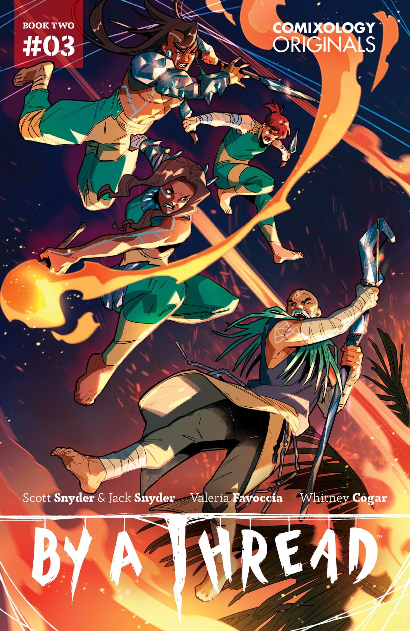 Reuniting the father-and-son team of Scott & Jack Snyder with artists Valeria Favoccia and Whitney Cogar and letterer Tom Napolitano, the world of By A Thread expands with an all-new story arc! Charlie and our young heroes have defied the odds by traversing the deadly Shroud in search of a safe haven. With foes more powerful than ever before on their trail, will they even make it onto land?