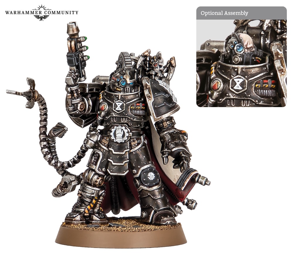 The Iron Hands Legion Praetor is a cold and calculating commander kitted out with some serious enhancements and a cyber-familiar, made from Forge World Resin and supplied with a choice of two heads.