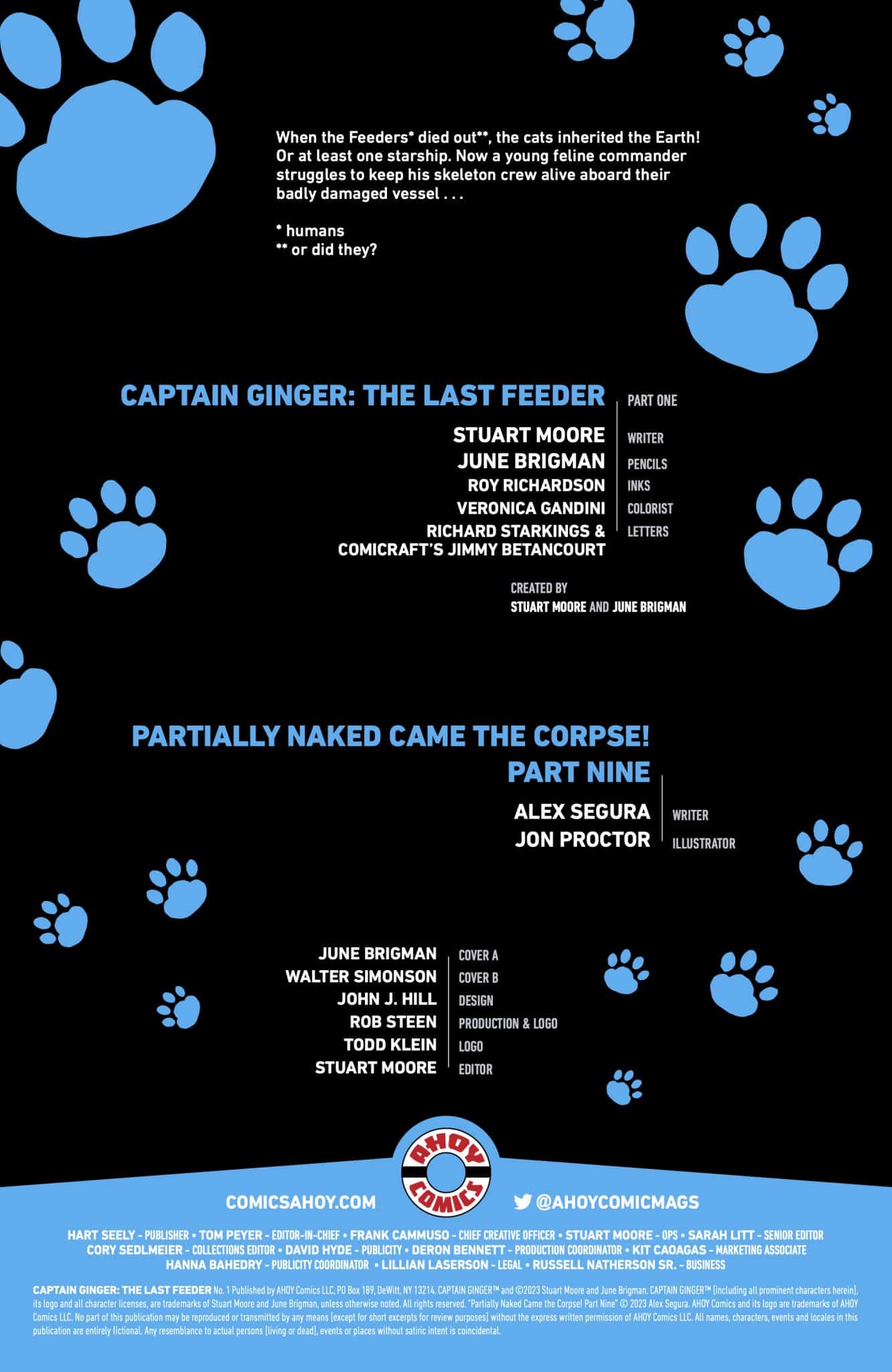 Over the following three months, Partially Naked Came the Corpse! will weave in and out of all AHOY’s regular titles, plus the fifth anniversary specials The Wrong Earth: We Can Be Heroes #1-2 and new title Deadweights #1. Finally, in late November, Partially Naked Came the Corpse! will conclude with a bang in the Captain Ginger: The Last Feeder #1, the first of another two-part anniversary series.