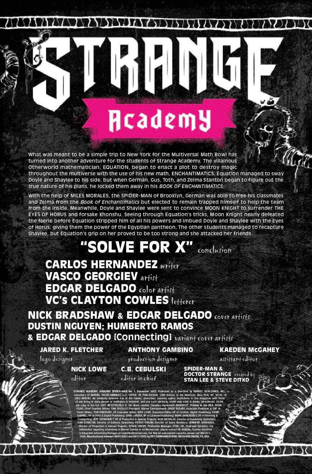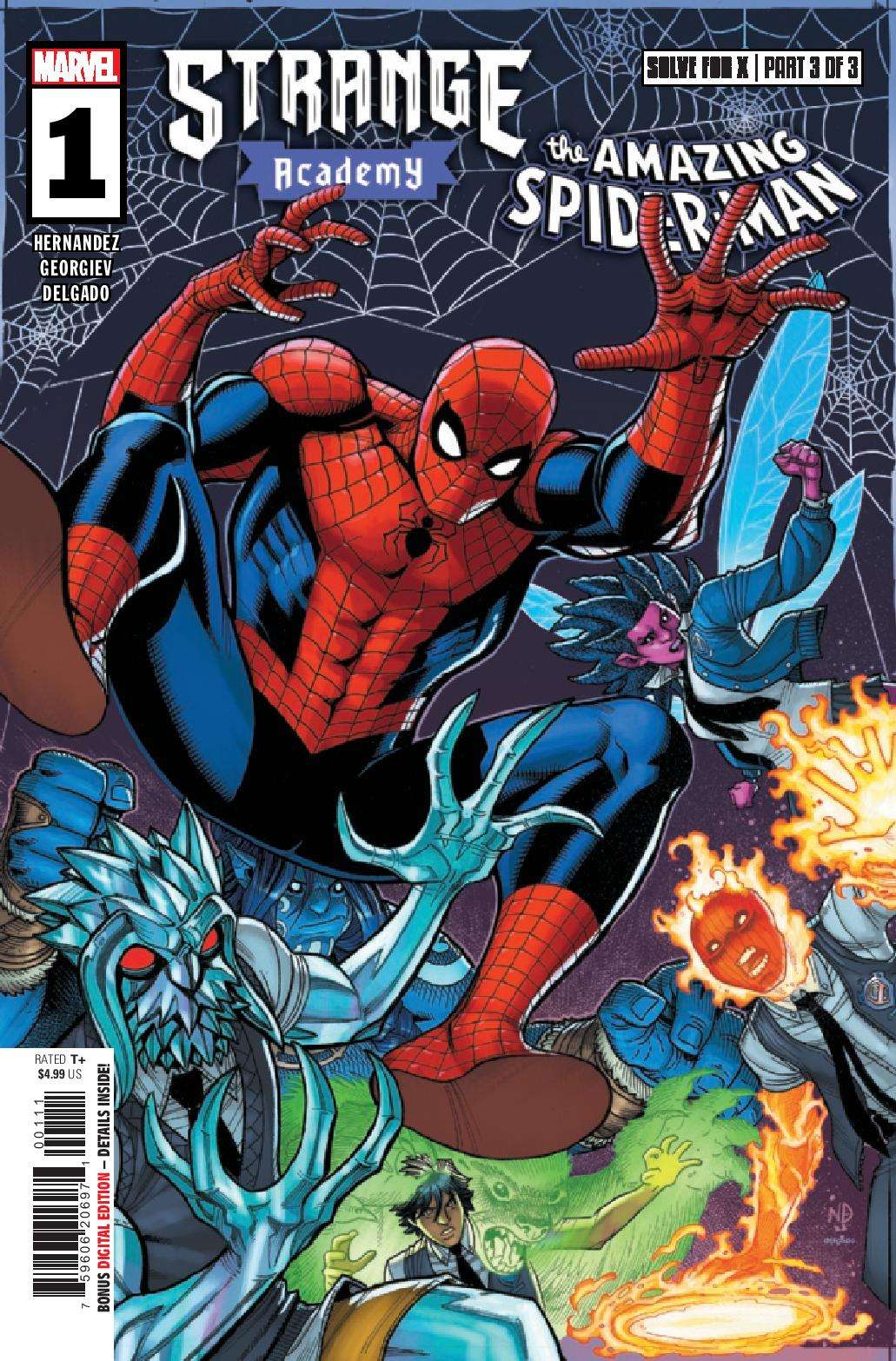 And in the grand finale, Strange Academy: Amazing Spider-Man #1, the Equation has taken down Miles Morales, Moon Knight and half the students of Strange Academy. Can Spidey swing in to help?