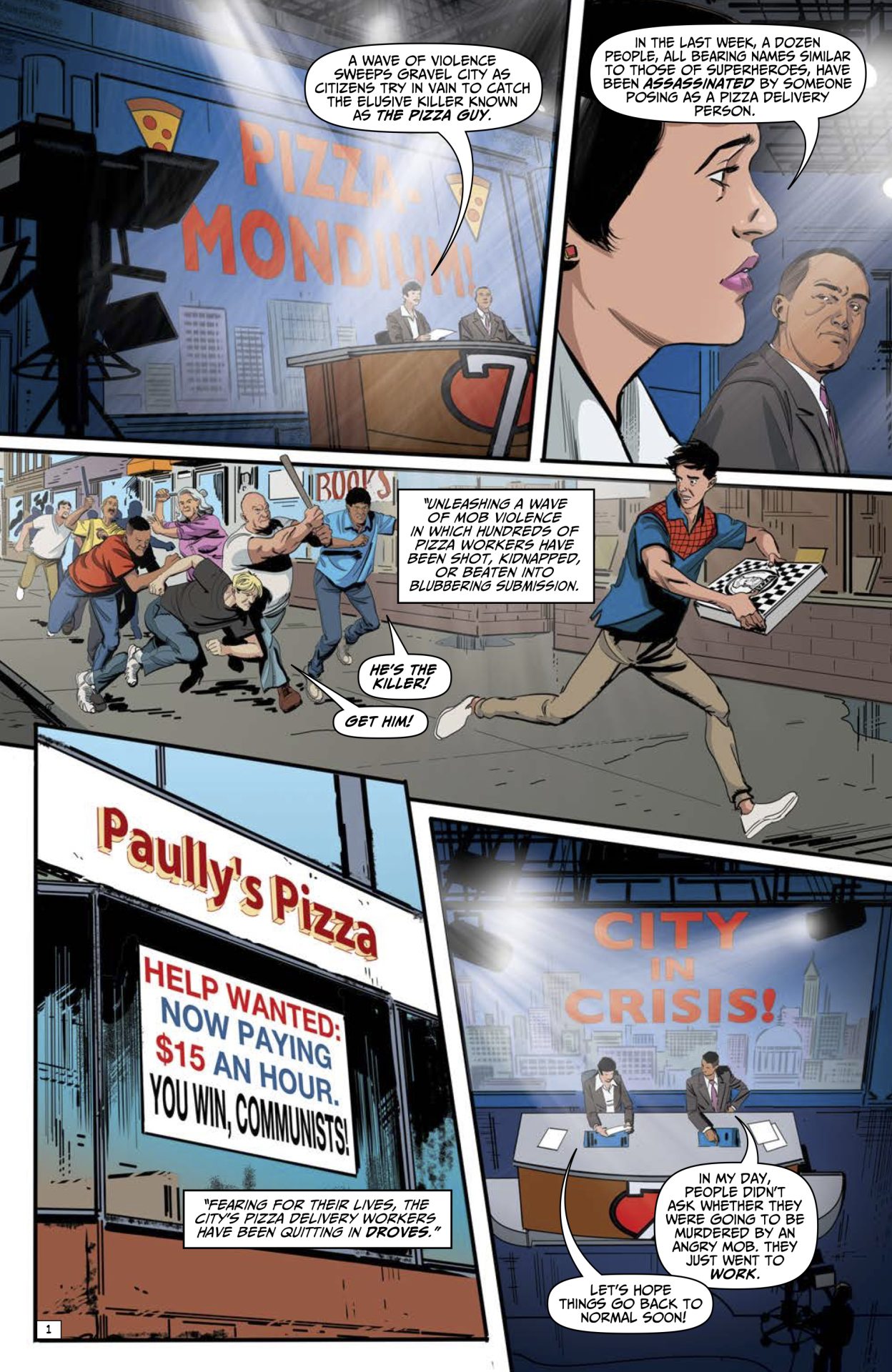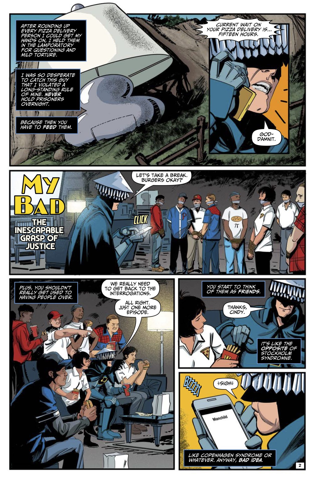 Mauricet‘s art is solid. There’s something to the style that really nails down the insanity of it all. Rob Steen‘s lettering, mixed with the art, delivers a slight calm to it all but that just makes each reveal all the more hilarious. The storytelling, the art, and the lettering, combine for an almost dry delivery that just enhances the comedy. Mauricet does a fantastic job of delivering the reactions by characters, for some, the shock of it all, and others a calm cool and collected brushing off.