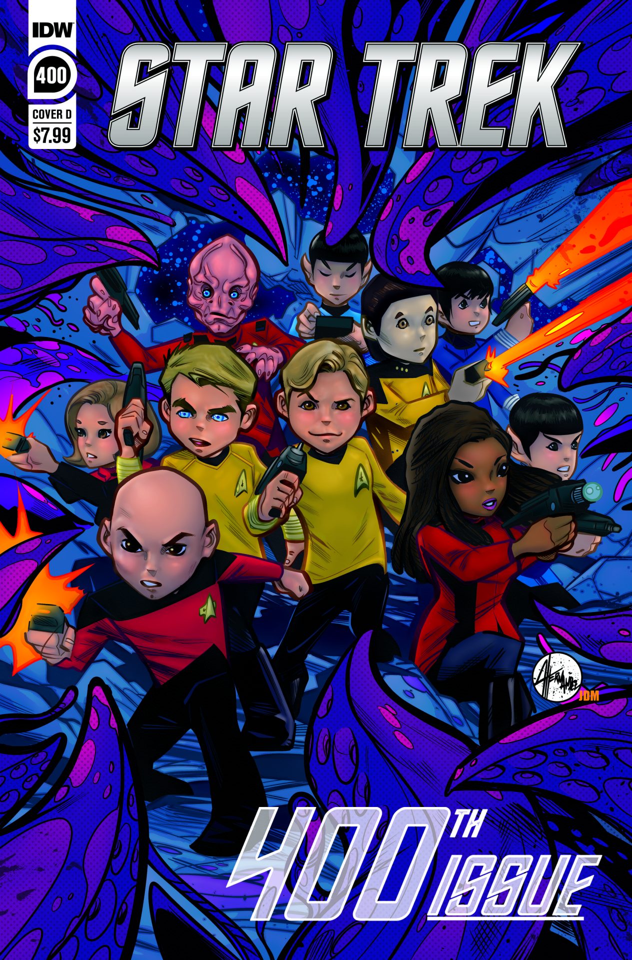 Celebrate IDW’s 400th issue of Star Trek comics with this monumental issue highlighting fan-favorite eras of the acclaimed series. This collection of minis brings together Star Trek comics veterans in an equal celebration of IDW’s Star Trek comics past and future. Join little Keyla Detmer-as seen in Star Trek: Discovery-Adventures in the 32nd Century #3-on a new expedition, visit the Kelvin Universe, witness a heartfelt tale by TNG’s very own Wil Wheaton, and more by Chris Eliopoulos, Declan Shalvey, Rich Handley, and Mike Johnson, with art by Luke Sparrow, Seth Damoose, Megan Levens, Angel Hernandez, and Joe Eisma!