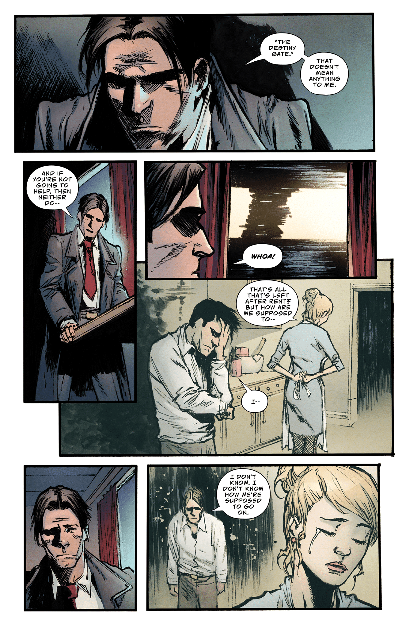 MINISERIES PREMIERE Writer RYAN CADY (HAUNT YOU TO THE END, Batman) and artist CHRISTIAN DiBARI (REVOLVERS, MAGDALENA: REFORMATION) present… Life, for the most part, is the product of the decisions you make. For some, a “wrong” decision or two (or more) leads to a crossroads on the other side of the Destiny Gate. Do you fight for a chance to survive and to start anew, or do you succumb to your inner demons and end it all for you and, worse, yours? In this opening tale, we meet Mitchell Slate at the height of the Great Depression. Down on his luck and heading home to a disappointed and desperate family, Mitchell’s train ride veers off the rails and transforms into a macabre and darkly fantastical journey into his own fragile soul