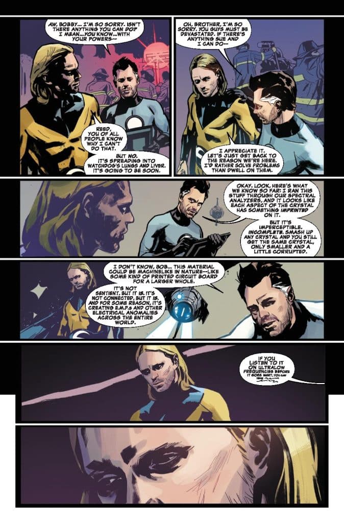 HULK VS. SENTRY! The CRYSTALLINE PLAGUE is spreading — and no one knows what it wants. Cities fall silent under frozen corpses, E.M.P. storms rage across the globe and the HULK himself is infected! As chaos escalates, SENTRY fights to keep the VOID at bay… but every battle drags him closer to the darkness inside. From a brutal showdown in the SIBERIAN WILDS to a catastrophic strike against KINGPIN’S EMPIRE, we plunge deeper into a mystery that threatens the entire planet — and the corrupted mind of its most powerful hero!