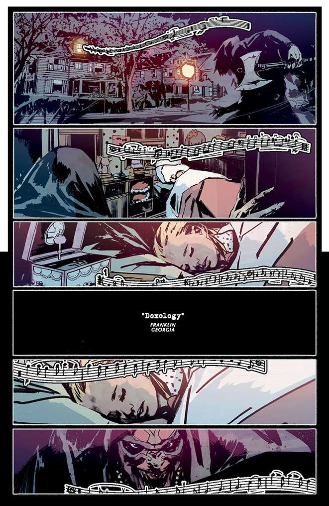 - DELUXE Edition including the oversized graphic novel (HC) w/bonus pages and a POP-UP insert featuring cover art by Jason Edmiston encased in the Piece of Mind Asylum Clamshell box with locking Cell Door Action and three (3) Piece of Mind Art Prints Triptych set by Hydro 74, ($150.00) – website only.