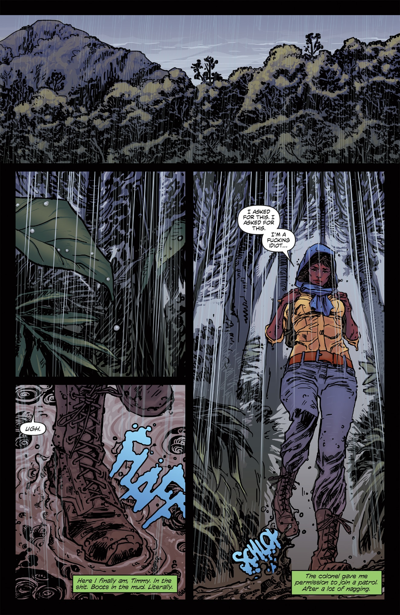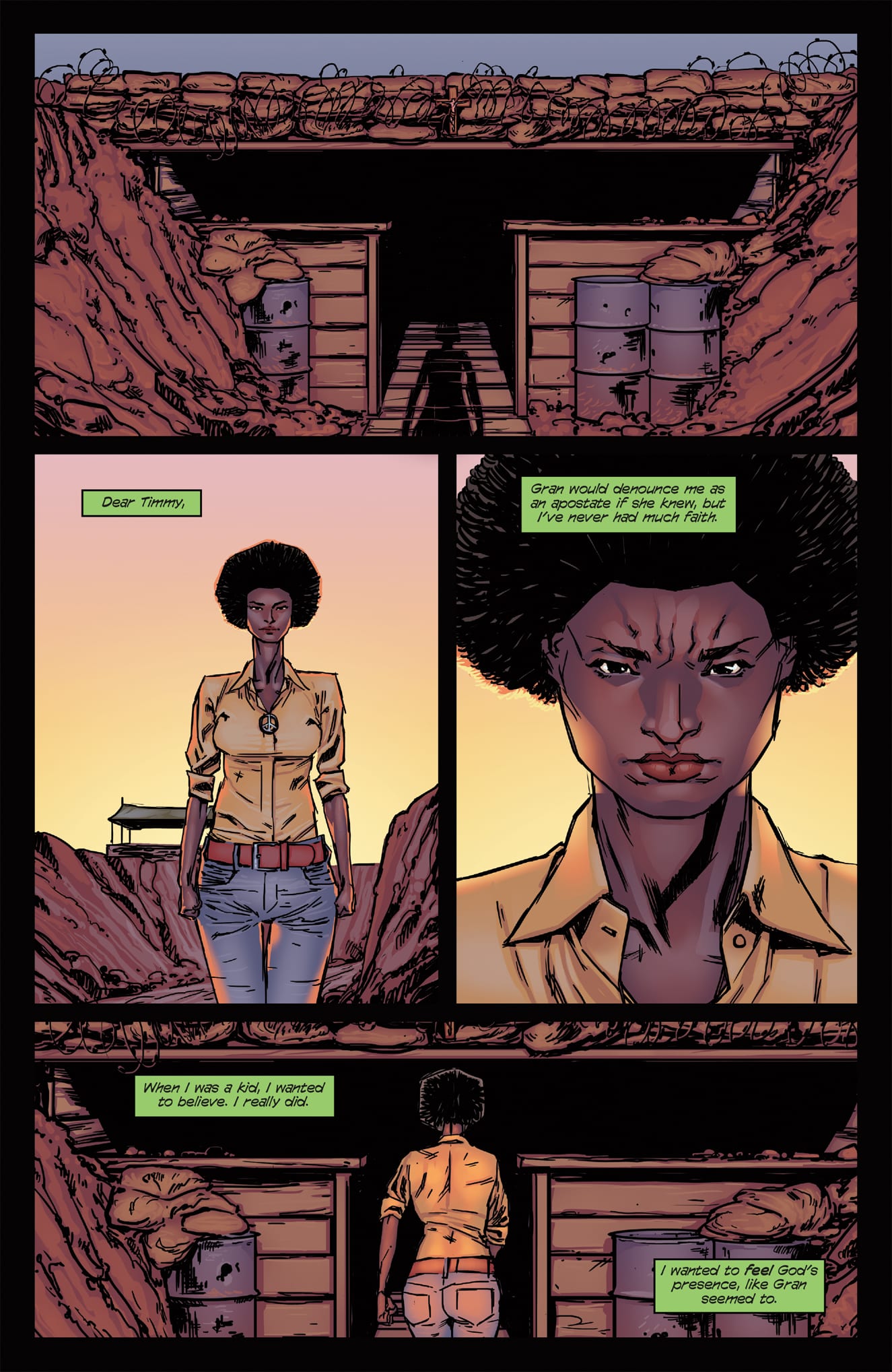 It is in this world, Faith finds herself struggling for her own sense of belonging and identity, while coming to terms with the mysteries of her past. In this single issue, many larger ideas and people are presented in a way that seems natural and not overbearing on the introduction of Faith and who she is. The crime lords of Rebecca and Dogen are discussed, along with Faith’s mother, her family’s demise, the Krugersec, as well as Noah’s Cabal, who she currently works for. There is also a small cast of nameless runners who work with and against her. With all of these parts being addressed the story does a commendable job not losing focus on Faith and her development. The twist at the end does seem a bit forced though, as there was not enough set up between Faith and Noah’s Cabal to truly make her final decisions as impactful as it could have been. Instead, moving through so many factions and people causes the narrative to miss out on building some of Faith’s relationships.