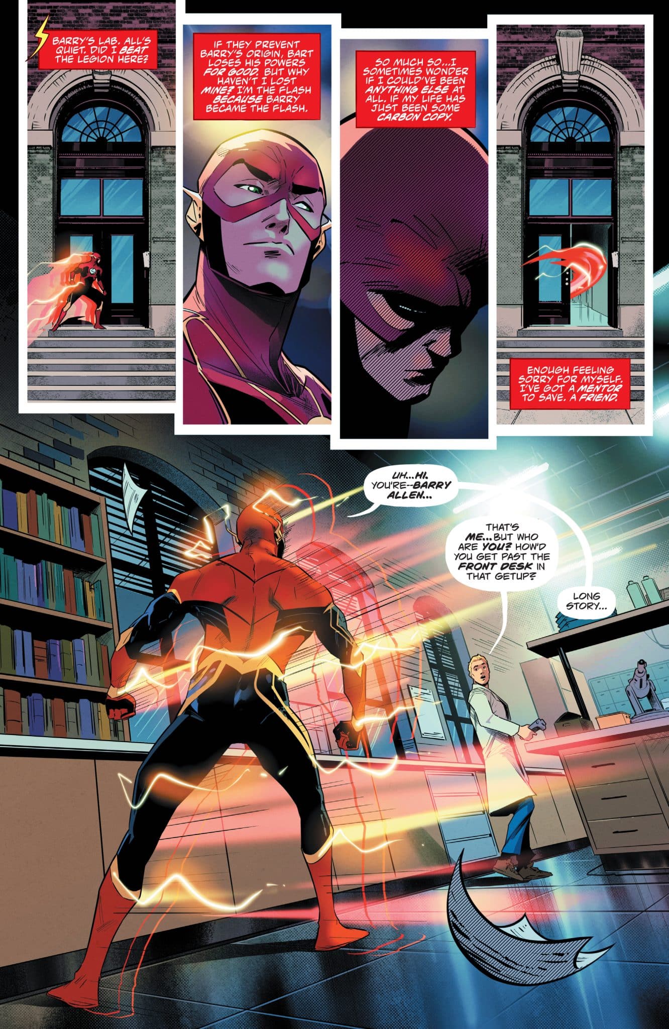 A RACE AGAINST THE DARK LEGION! The Dark Legion chase the Flash and Impulse to a pivotal moment in Flash history: the moment when Barry Allen was struck by lightning!