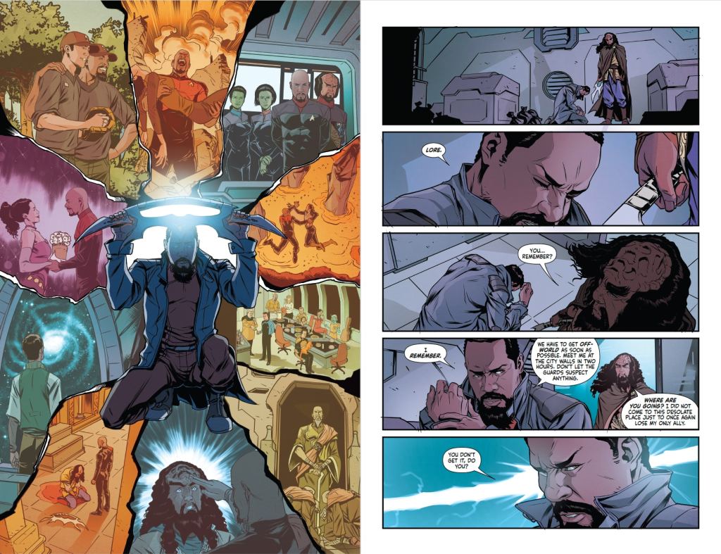 Lore War shows us a universe rebuilt in Lore’s image. The crews of the Theseus and the Defiant are scattered across the universe with no memory of who they once were—some even worship Lore as their God. Lore has won; his rule is absolute. But the Sisko remains, and there are forces who wish to remind him of his power.