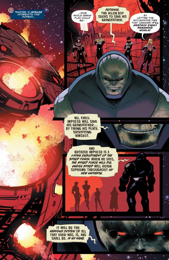 SPEEDSTERS FROM THE PRESENT MEET DARKSEID FROM THE PAST! The Speedsters’ race through time has led them to an encounter with a Darkseid from the past, and their escape leads them to a shocking reunion!