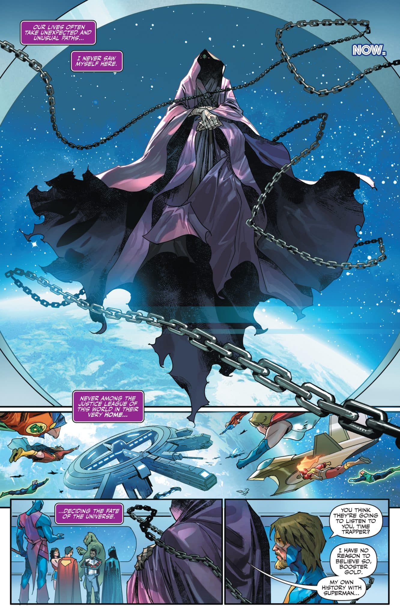Written by Marc Guggenheim and Mark Waid, Justice League: Dark Tomorrow Special is a one-shot “bridge” issue wrapping up the previous storyline, “We Are Yesterday,” and teasing what’s to come in Justice League Unlimited, DC K.O., and Superman. It continues the drama of time displaced heroes and just generally DC’s time travelers being hunted by unknown forces with some connection to Darkseid, who we’re warned is coming. Last we saw the character kicked off All-In, the latest thread of stories connecting the DC Universe. Last we saw the character, he was killed after bonding with Spectre and apparently kicking off the “Absolute Universe.” With DC K.O. apparently having to do with the character, and this one-shot, the rumor of his demise was greatly exaggerated.