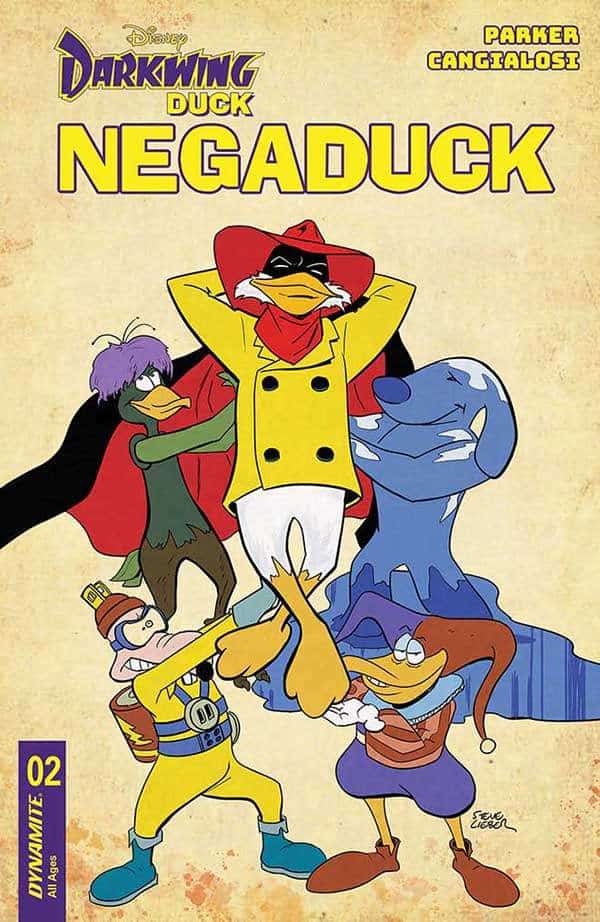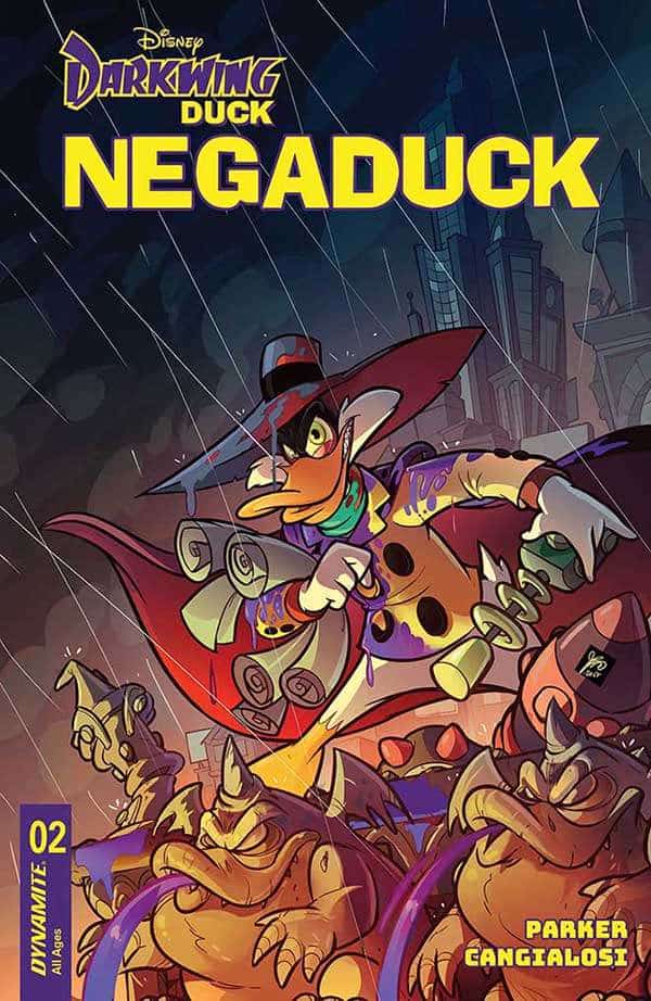 Writer JEFF PARKER and artist CIRO CANGIALOSI continue their nefarious narration of Darkwing Duck’s most notable nemesis, aided and abetted by the cleverest of cover art collaborators, including JAE LEE, TRISH FORSTNER, and STEVE LIEBER!