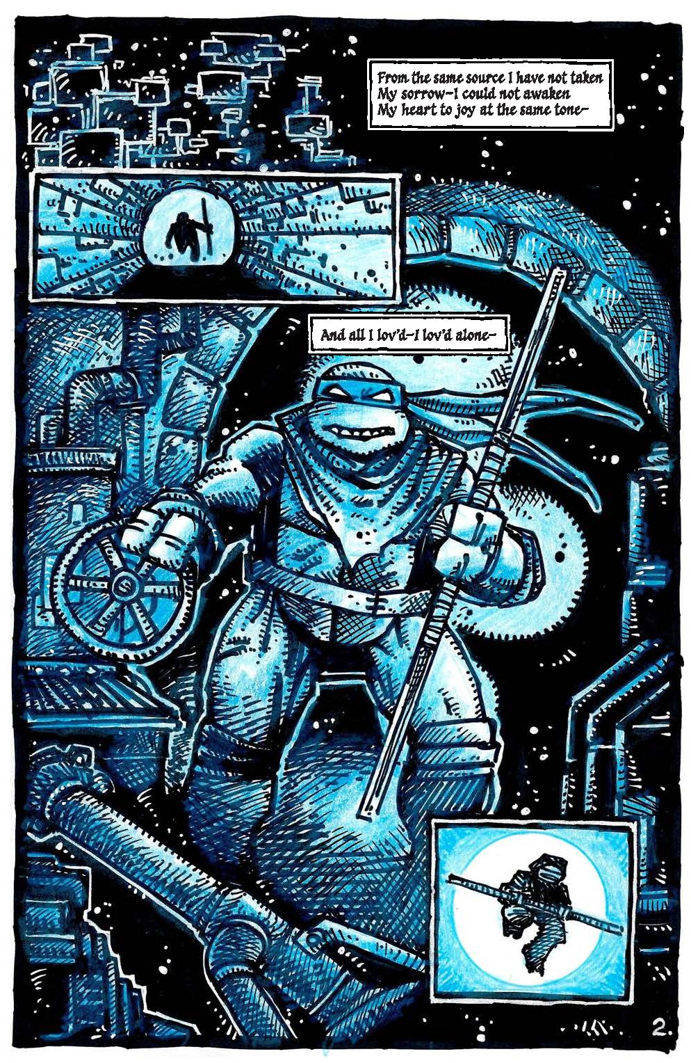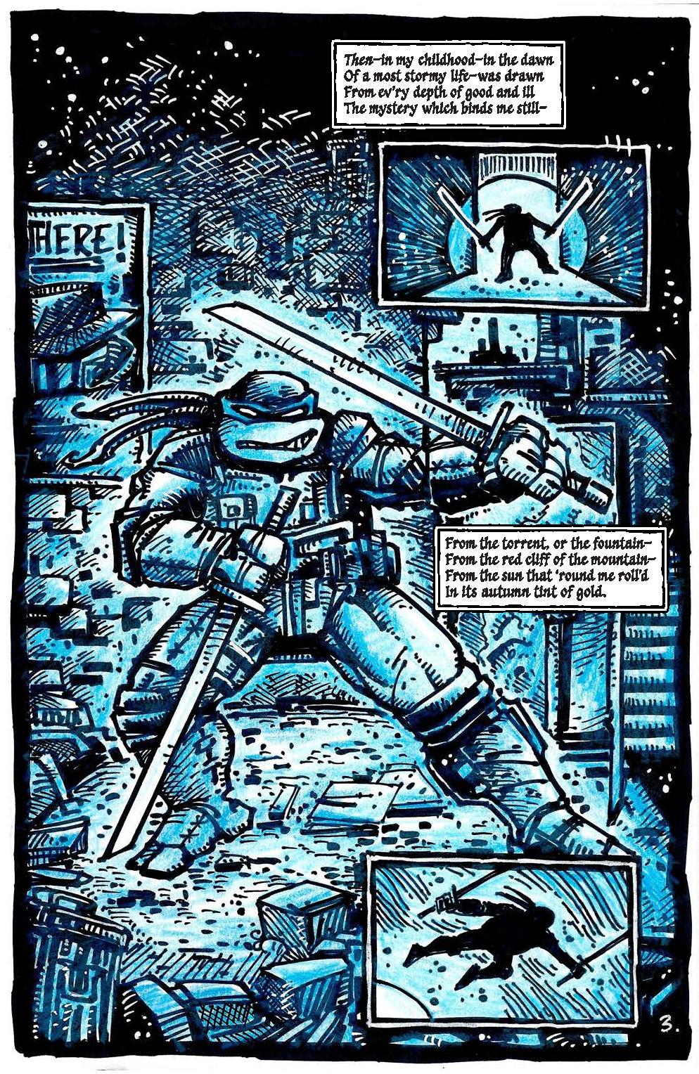In “Mirage 1 Story,” we look at Raphael’s life as the Last Ronin through the words of Edgar Allen Poe. In “Monsters,” one boy is left traumatized by an encounter with a thug and one of the boys. In “Gang Wars,” one reporter reflects on the different news stories she has heard in 20 years about the Turtles, their friends and their enemies. In “Downtime,” the boys patrol the sewers and reflect on how much they have changed. In “Man Behind The Mask,” Raphael and April meet Casey Jones for the first time. In “What about Tomorrow,” the boys question their future. In “Splinter Forever,” Splinter reflects on his life while trapped by Shredder, only to free him and reaffirming his life choices. In “Kraang Among Us,” the boys have a dance off with a local dance crew who turns out to be Kraang Primordius. In “Farewell,” we are taken 20 years into the future, where the boys try to finagle with time travel. ”Father’s Day” sees Michaelangelo with is son visiting Splinter at his grave. In the final story ”Teen Spirit,” the boys are taken to a place between worlds called the Thin Place, where reality and dreams become entangled and the boys’ mettle get tested.