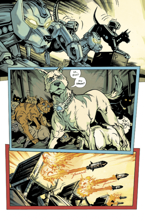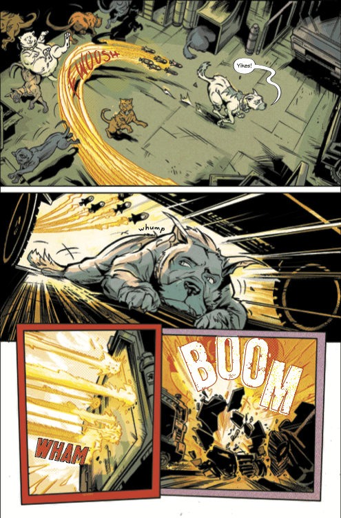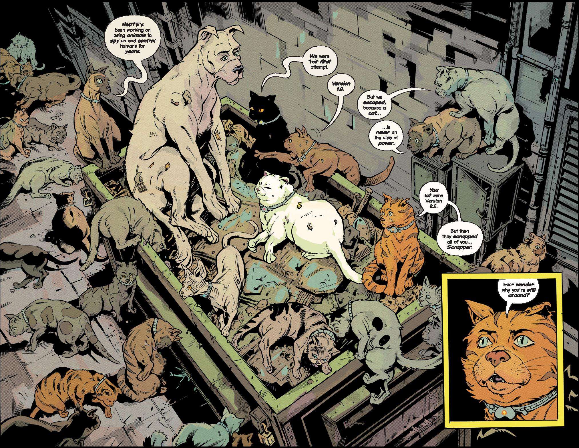 Scrapper takes the fight all the way to SMITE’s leader, but there’s one more terrible surprise for him waiting there. Meanwhile, all that stands between SMITE and city-wide animal mind control is our team of strays and varmints. Can the animals that nobody wants manage to save everybody? The thrilling conclusion to CLIFF BLESZINSKI’s comics debut.