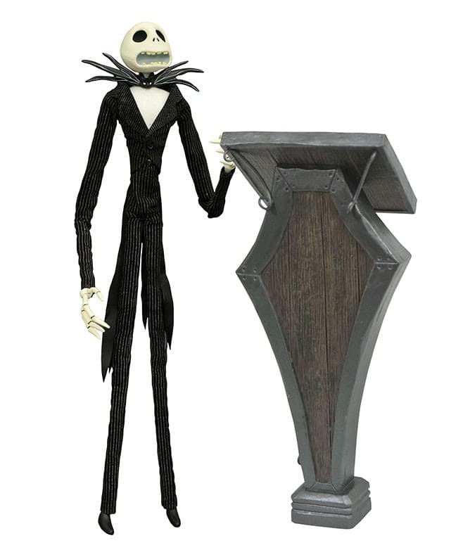A Diamond Select Toys release! The Coffin Dolls line just got super-sized! Just in time for the 25th anniversary, these two new releases of Jack and Sally from Tim Burton’s The Nightmare Before Christmas feature new facial expressions and new accessories – a podium for Jack and a cauldron and spoon for Sally! Each 14” scale doll features a real cloth costume and multiple points of articulation, looking like it just stepped off the big screen! Each comes packaged in an oversized coffin-shaped window box. Heads not final.