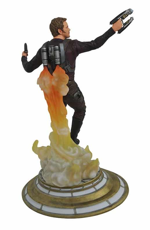 A Diamond Select Toys release! It’s Star-Lord! Who? You know, Star-Lord? The leader of the Guardians of the Galaxy, comrade of the Avengers, enemy of Thanos and his cohorts? No? Well, this 9” scale PVCdiorama stands approximately 11 inches tall and depicts the space hero rocketing up with his jet-pack, element guns drawn. This exclusive unmasked version features the likeness of actor Chris Pratt, and comes packaged in a full-color window box. Sculpted by Rocco Tartamella! (Item #JUN182326, SRP: $45.00)