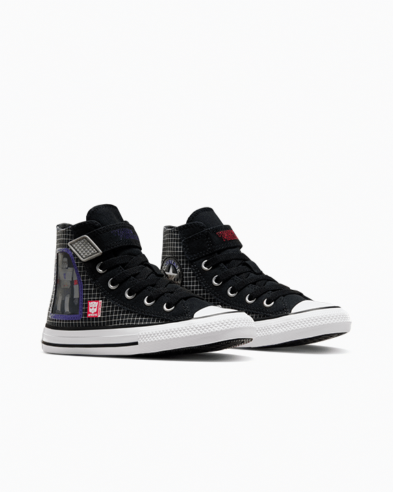 Roll out! The world of heroic AUTOBOTS and evil DECEPTICONS reaches the canvas of Chuck Taylor All Star high tops your kids will love, with OPTIMUS PRIME and AUTOBOTS graphics on one shoe and MEGATRON and DECEPTICON details on the other.