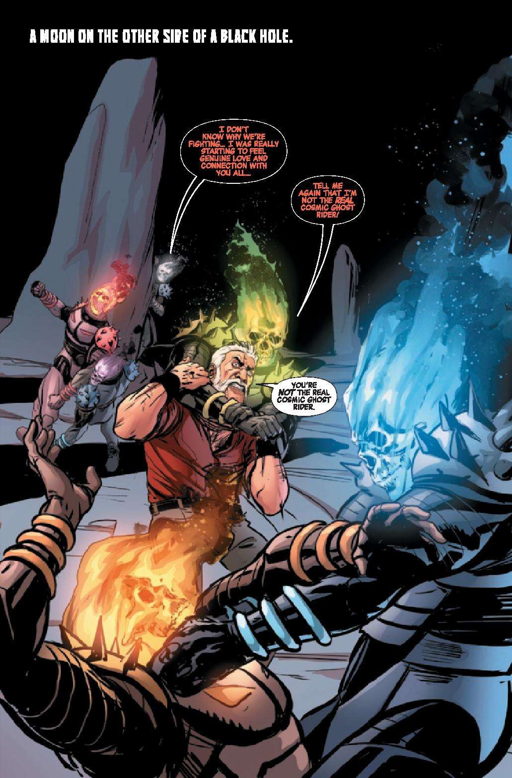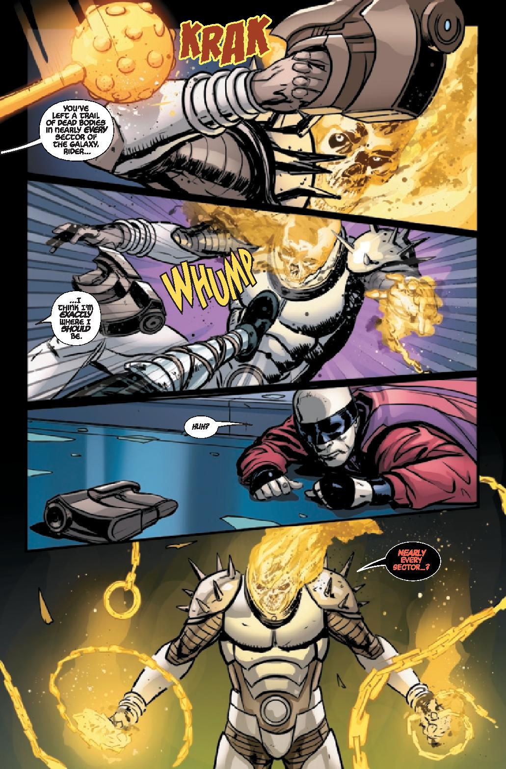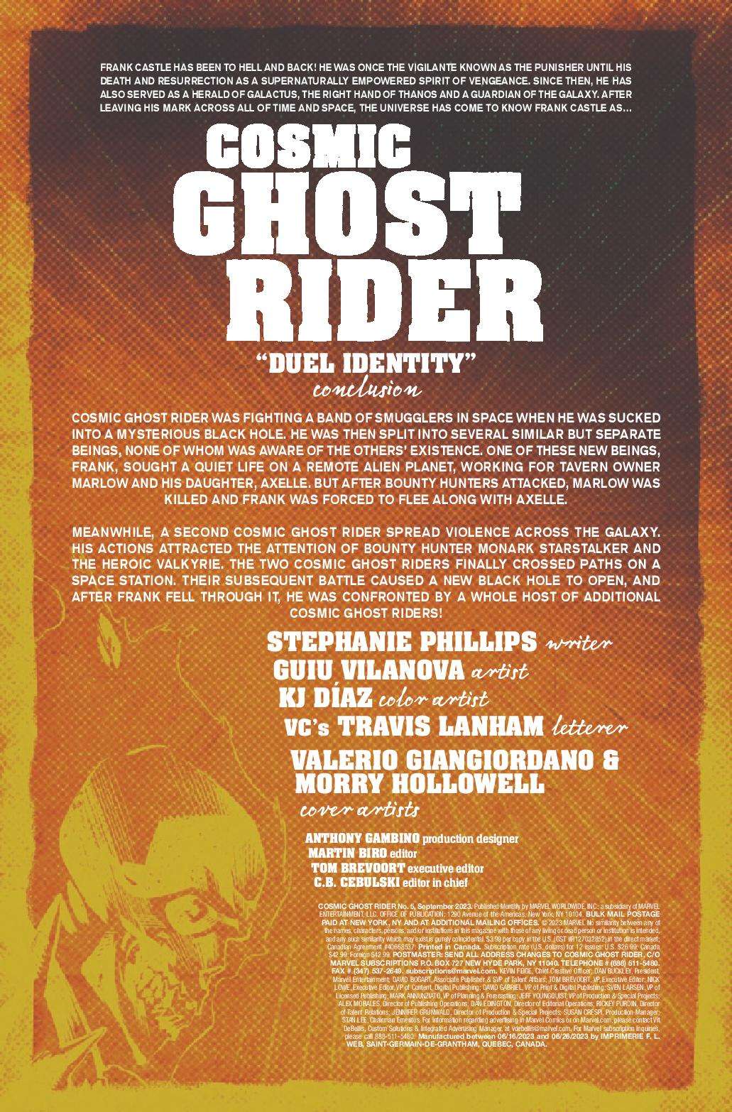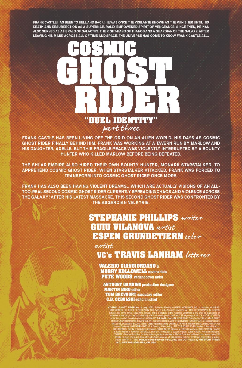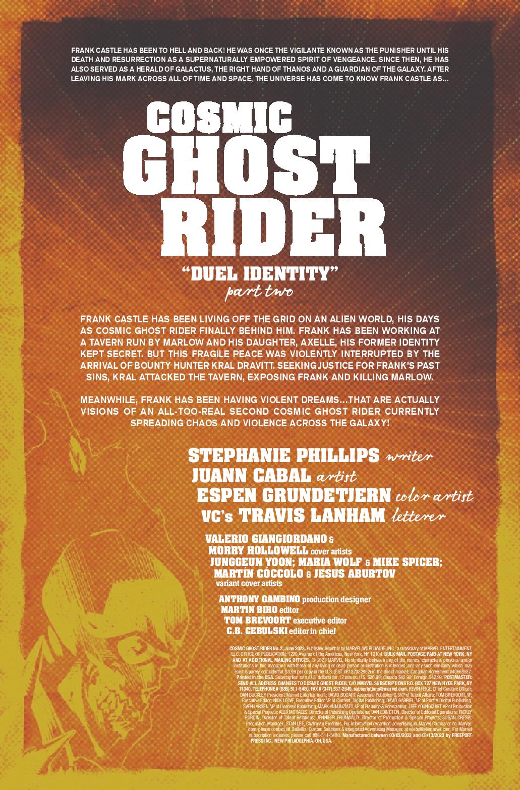 In a far-flung corner of deep space, Frank Castle has eked out a quiet existence, his days as Cosmic Ghost Rider finally behind him. But, that peace is threatened as another being calling himself Cosmic Ghost Rider is leaving a pile of bodies in his wake.