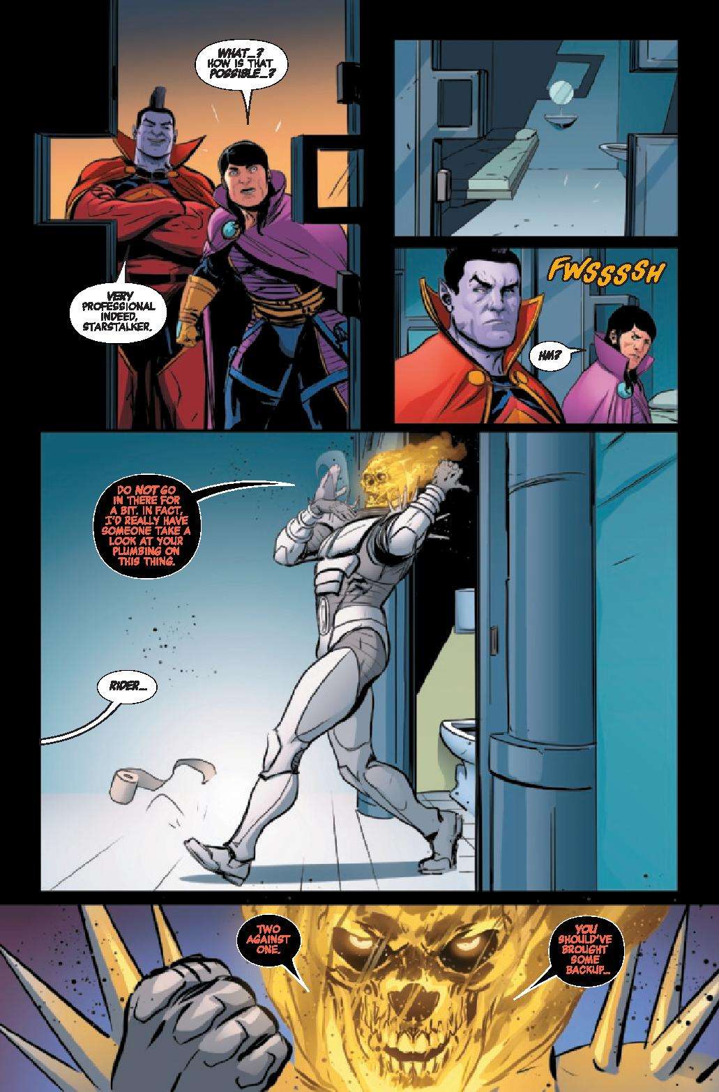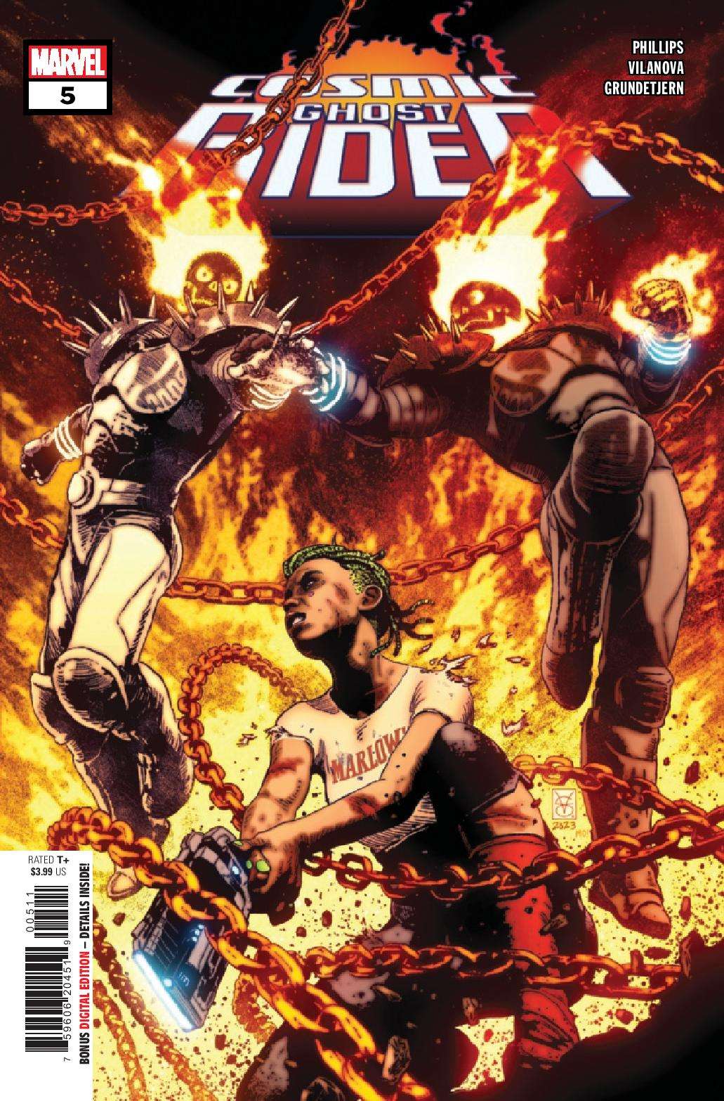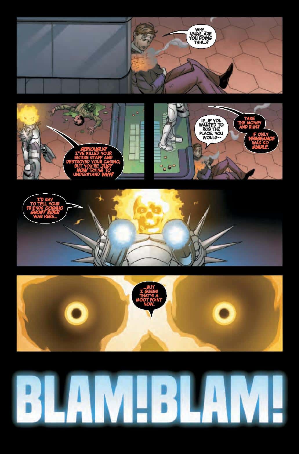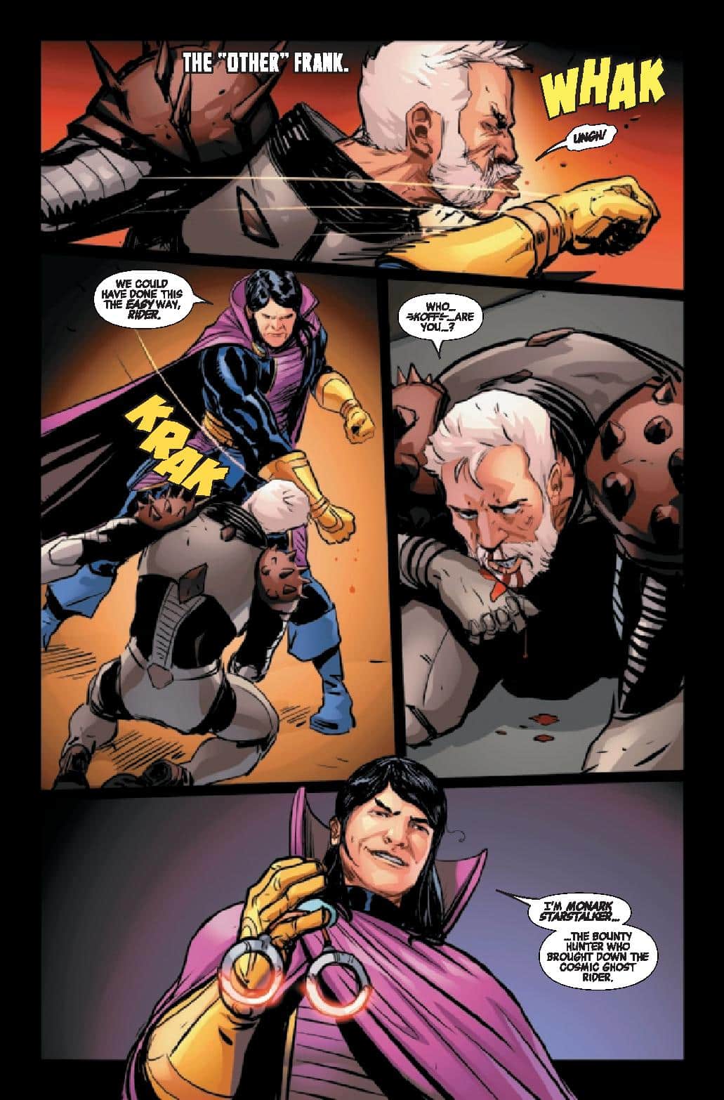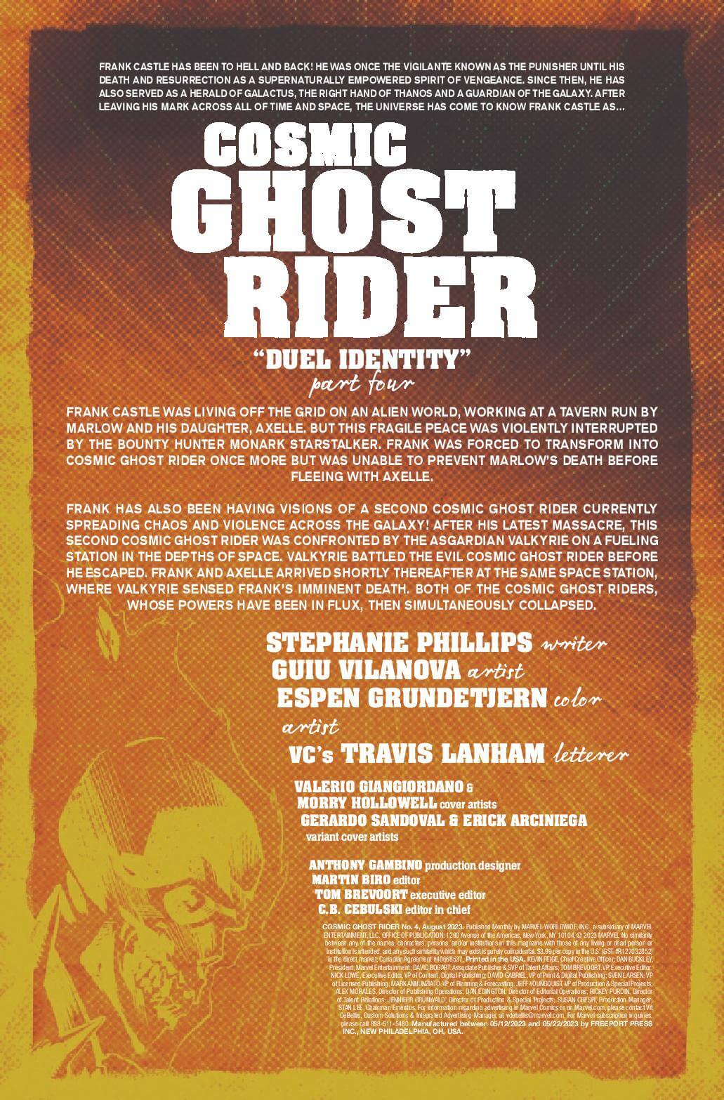 In a far-flung corner of deep space, Frank Castle has eked out a quiet existence, his days as Cosmic Ghost Rider finally behind him. But, that peace is threatened as another being calling himself Cosmic Ghost Rider is leaving a pile of bodies in his wake.