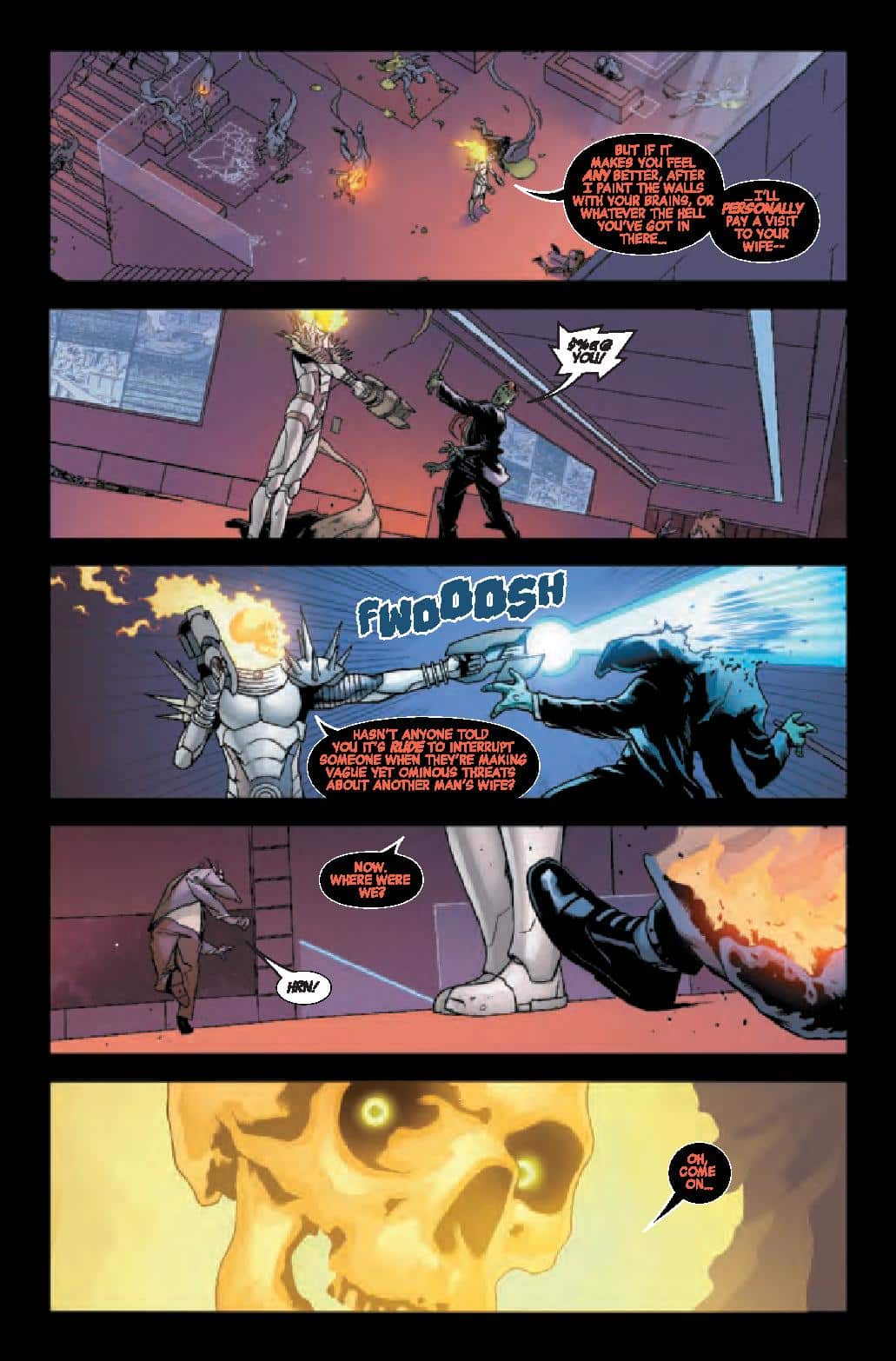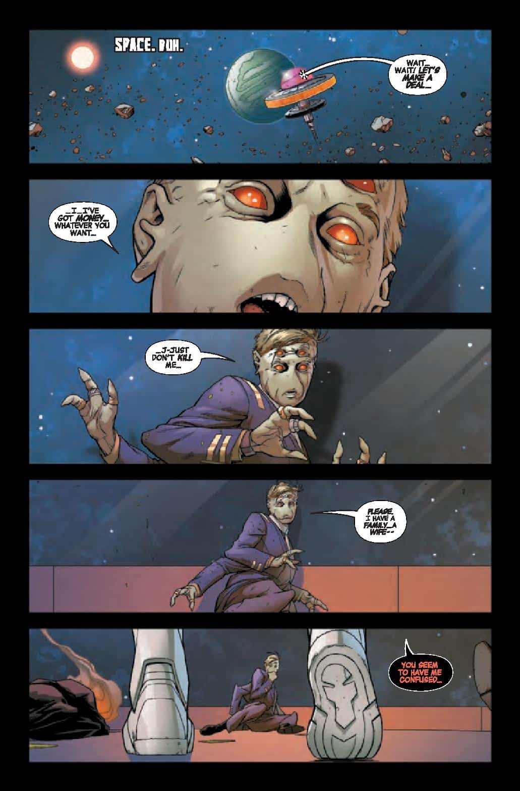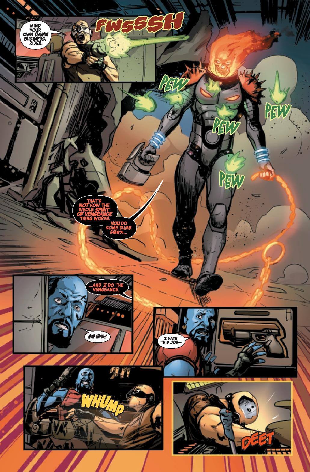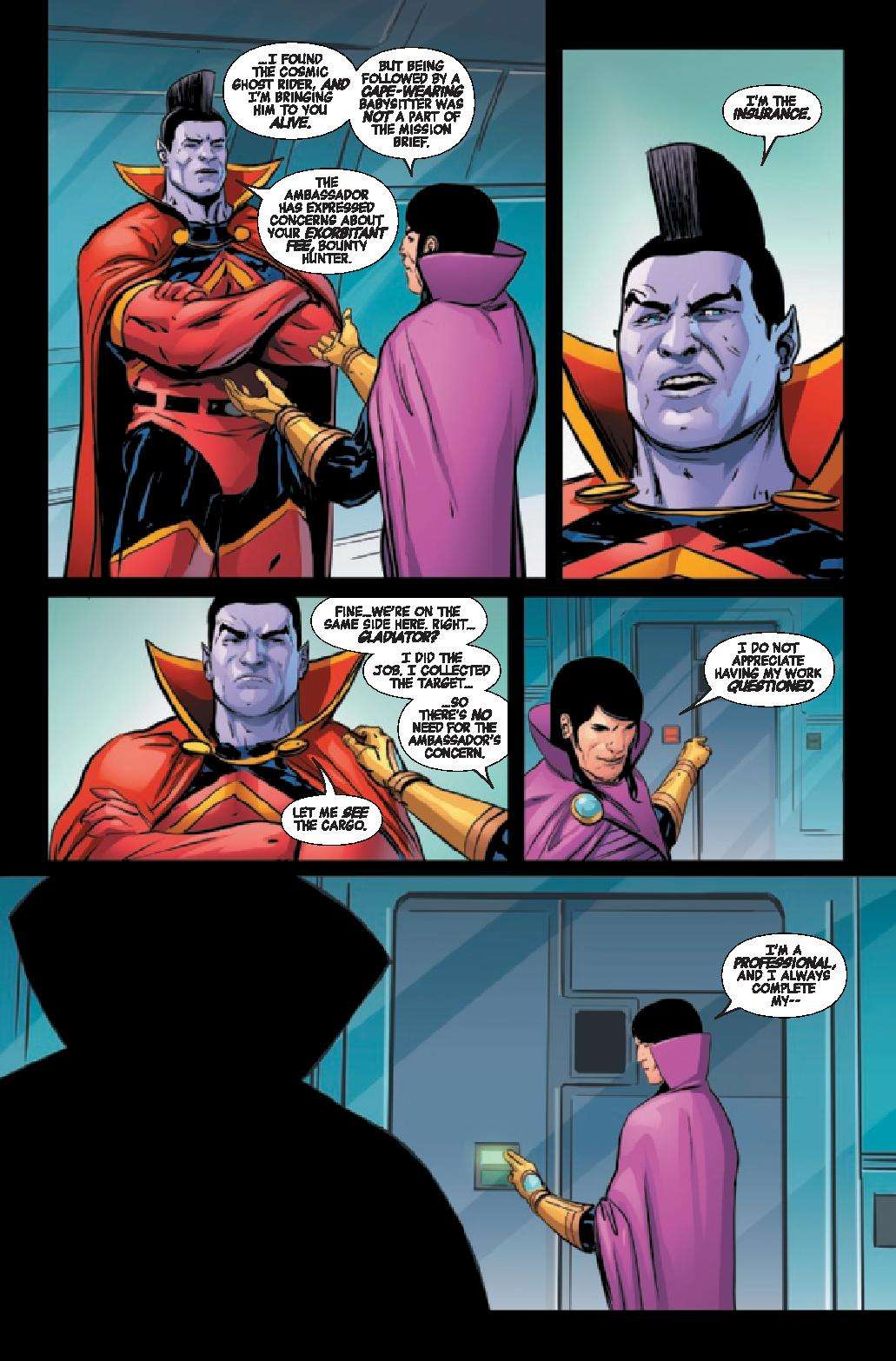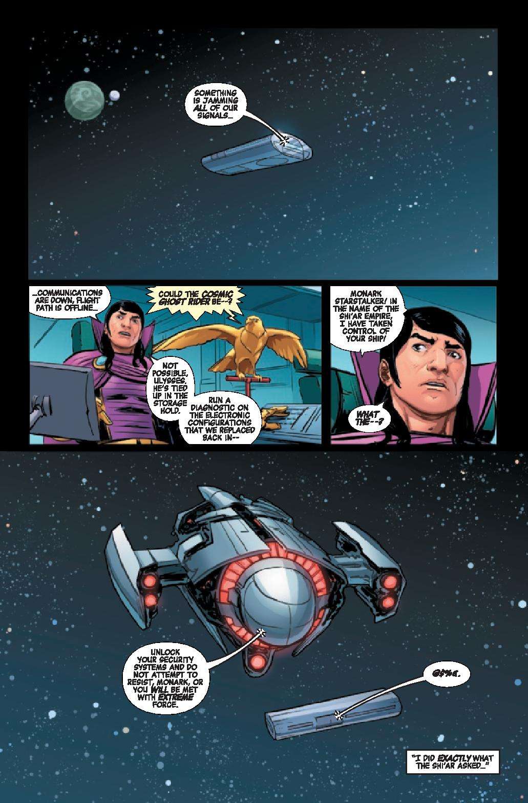 In a far-flung corner of deep space, Frank Castle has eked out a quiet existence, his days as Cosmic Ghost Rider finally behind him. But, that peace is threatened as another being calling himself Cosmic Ghost Rider is leaving a pile of bodies in his wake.
