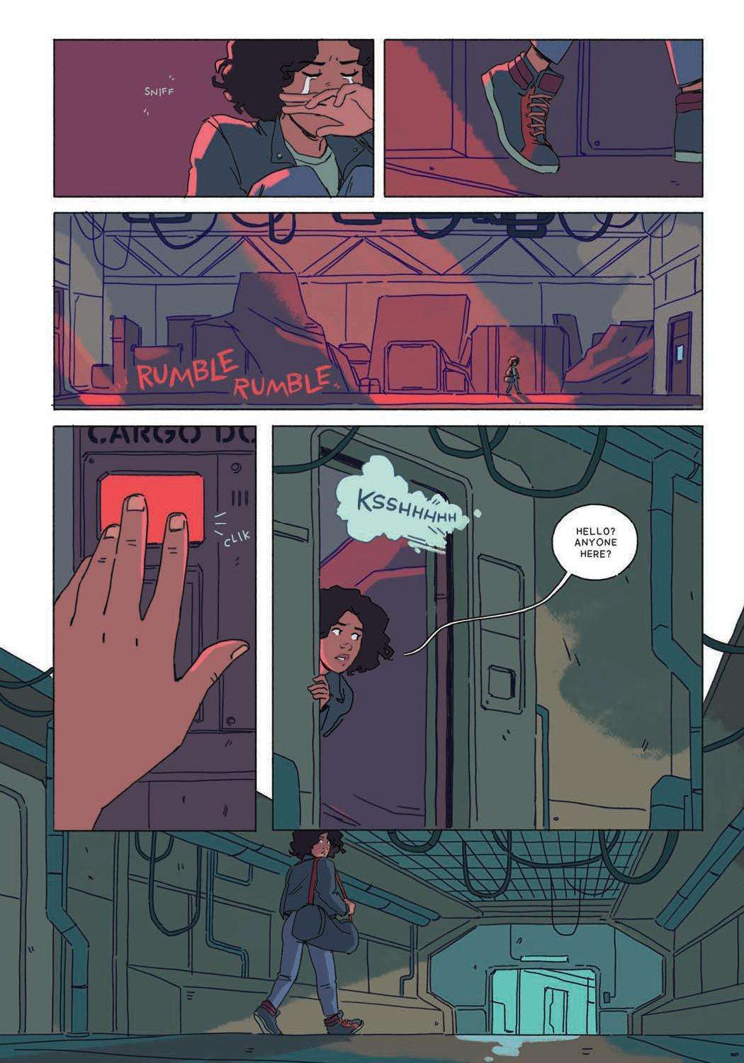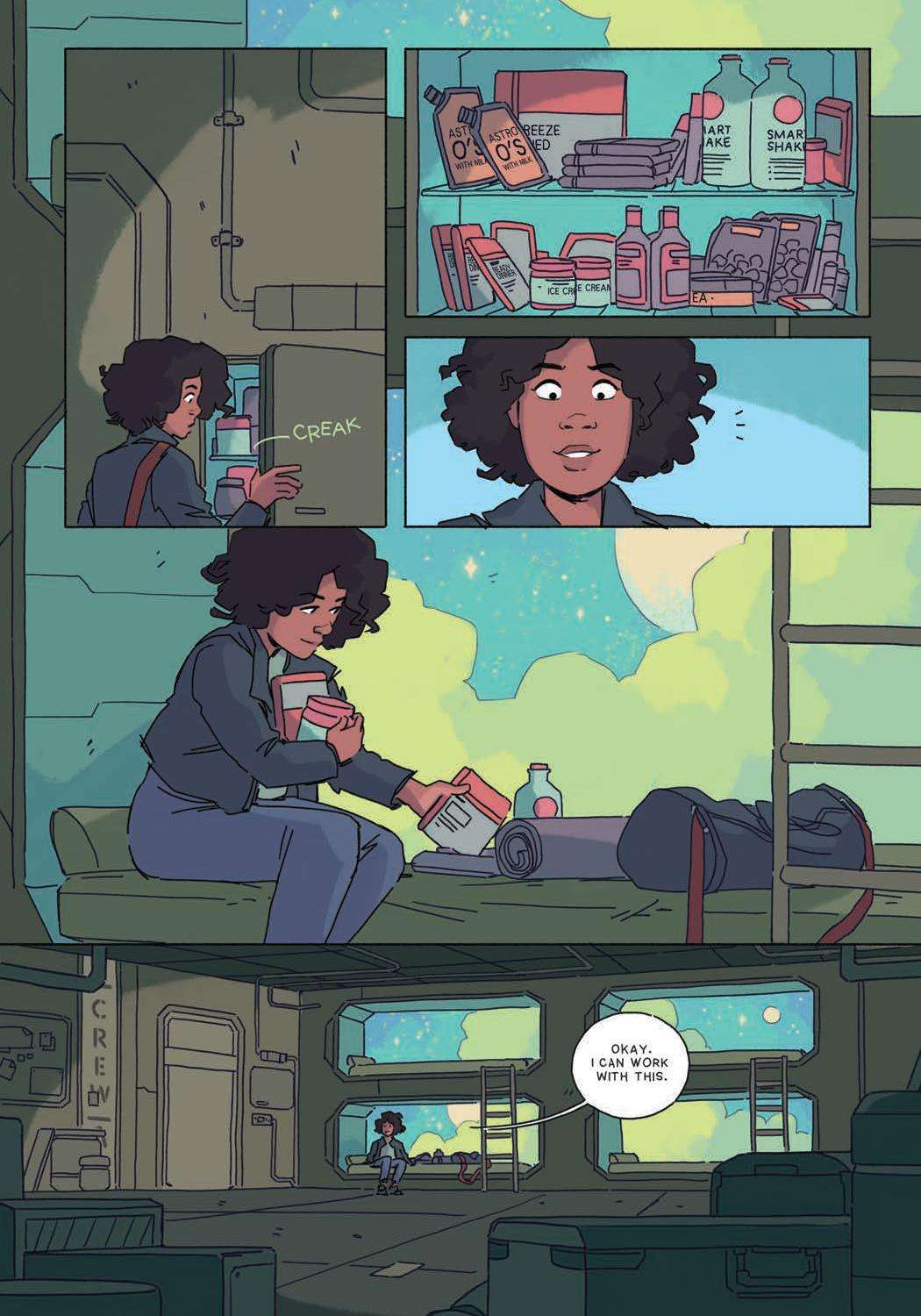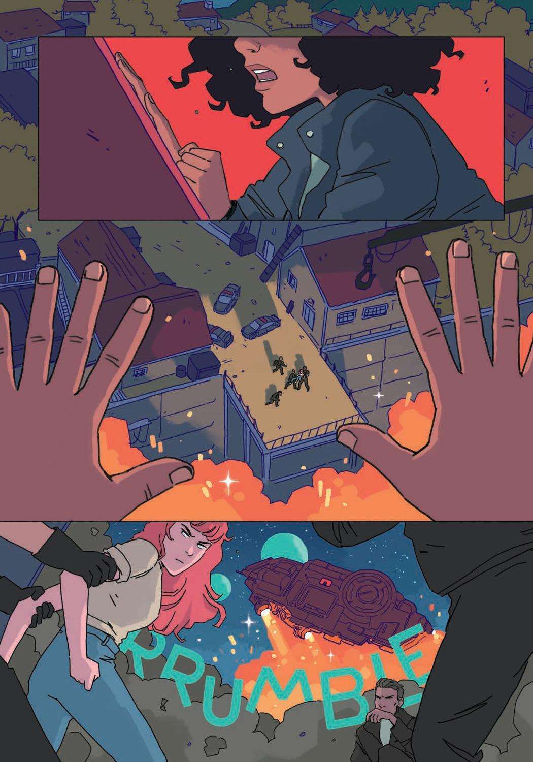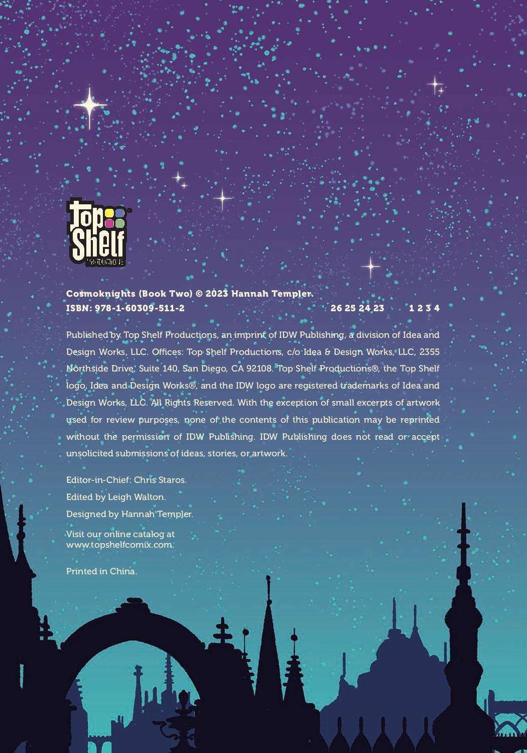 In CosmoKnights, Pan’s life used to be very small. Work in her dad’s body shop, sneak out with her friend Tara to go dancing, and watch the skies for freighter ships. On the run and off the galactic grid, Pan discovers the astonishing secrets of her neo-medieval world… and the intoxicating possibility of burning it all down. Published by Top Shelf.