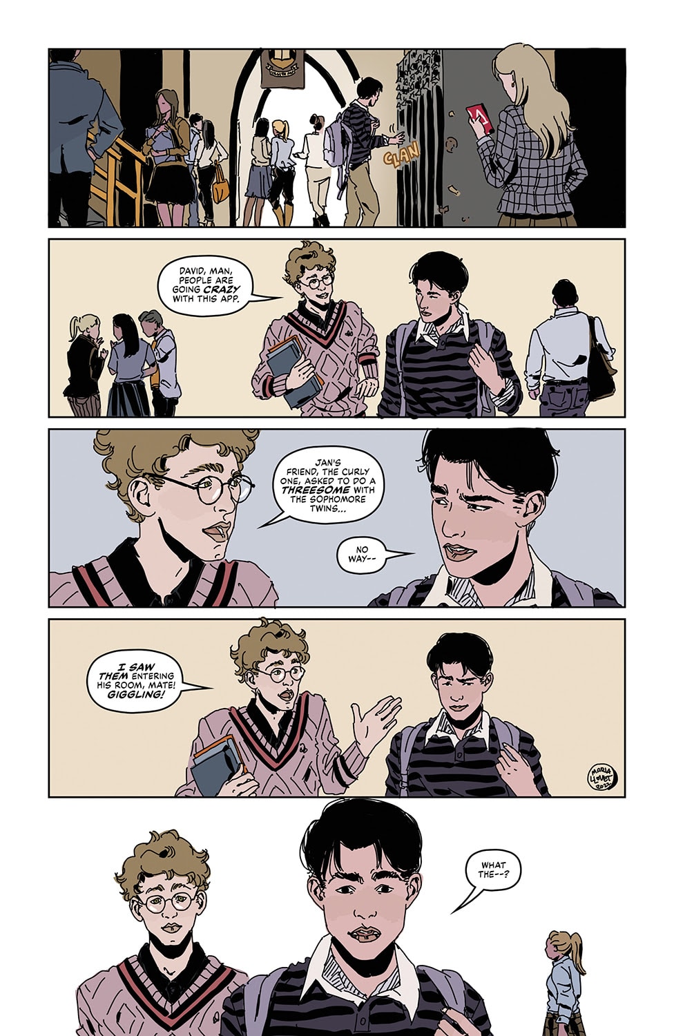 Crave, a mysterious app that promises to make your desires come true, spreads among the students of an elite university who use it as a hookup app. David, a top student, engages in a game of seduction with the unattainable Alexandra. But as requests to the app escalate and wreak havoc on campus, David and his friends’ only chance to stop this spiral is to find out what really lies behind Crave. Crave #1 feels like a relevant look at social media and technology and its the teased pleasures they promise us.