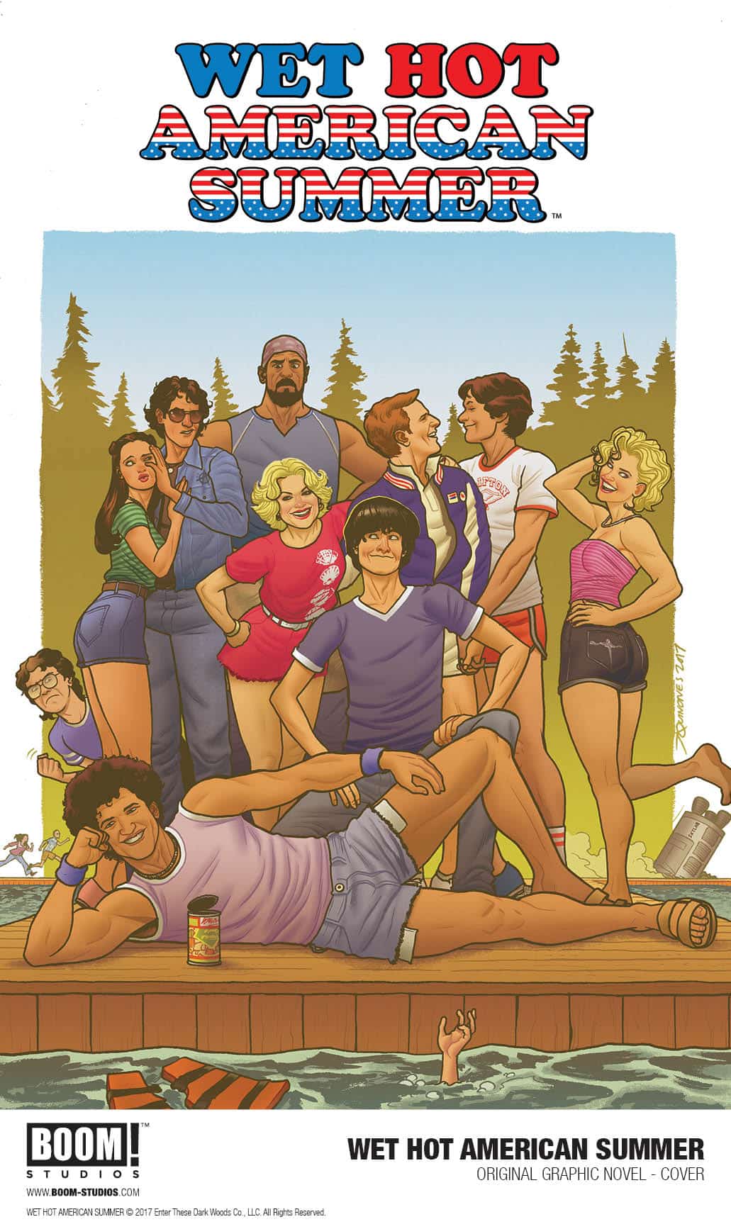 BOOM! Studios, Enter These Dark Woods, and Creative Licensing have released a first look at the Wet Hot American Summer original graphic novel (OGN), arriving in stores November 2018. In the first ever graphic fiction tie-in to the eponymous film, writer Christopher Hastings and artist Noah Hayes reunite your favorite characters from Camp Firewood in an all-new story, featuring a cover by Joe Quinones.