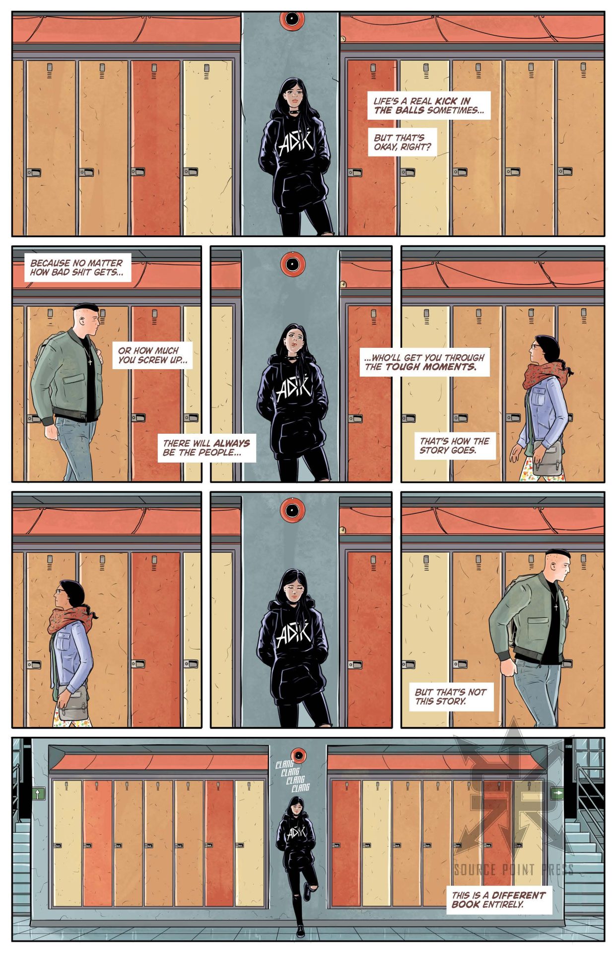 No Heroine #1 explores the surface of the series concept. There’s a lot of potential in the ideas within. The concept of addiction and vampirism are something worth exploring together. How far someone is willing to go to get their drug is another? And, someone attempting to stay clean while having to explore within a world where that’s difficult is yet another concept worthy of a story. Any of these things would make a must-read comic. But, we instead get a copy Buffy the Vampire Slayer and a not as sunny main character.