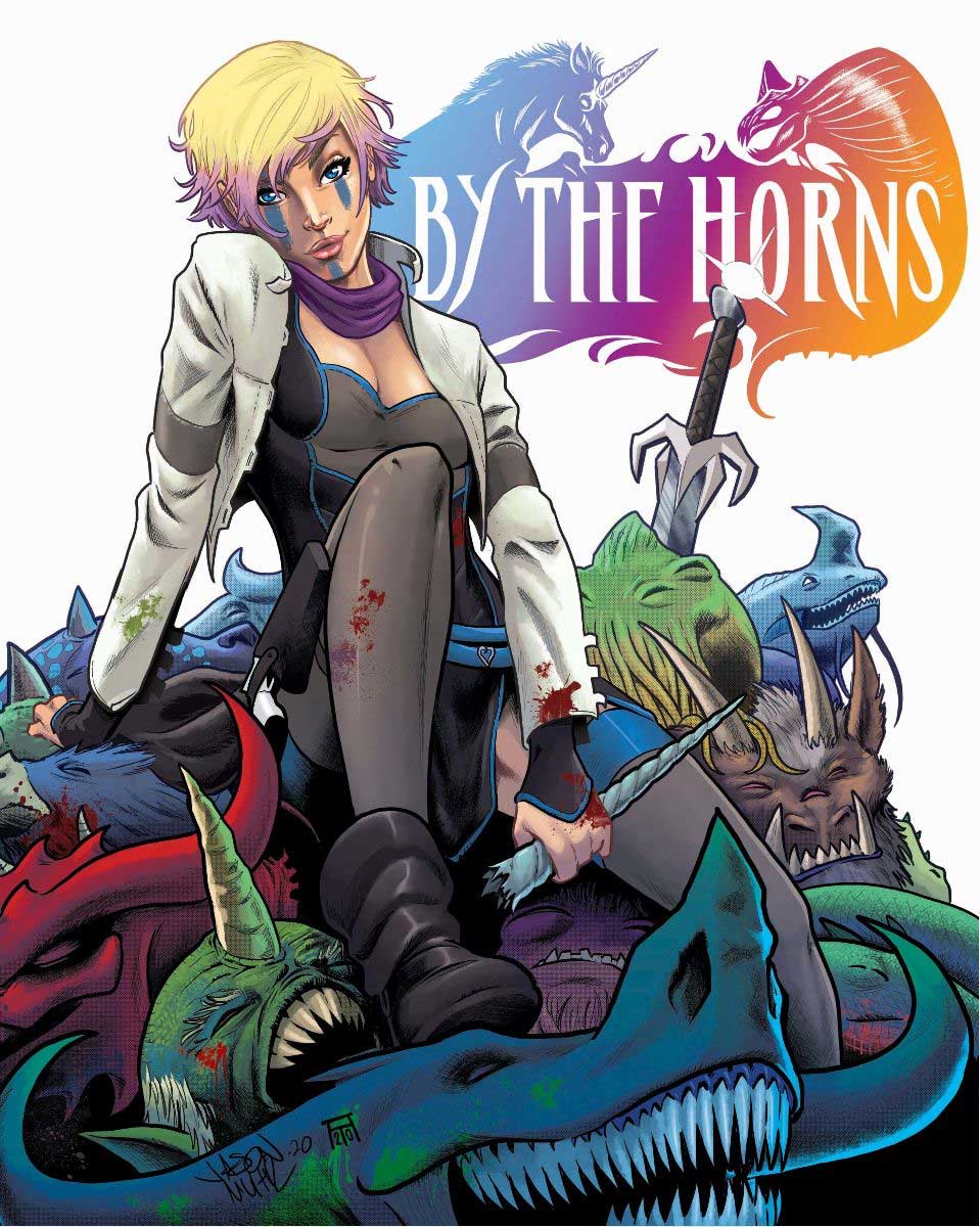 By the Horns #1 (Scout Comics) – Marisan Naso and Jason Muhr are back together for a new series about a woman on an act of murderous revenge against unicorns who trampled her husband.