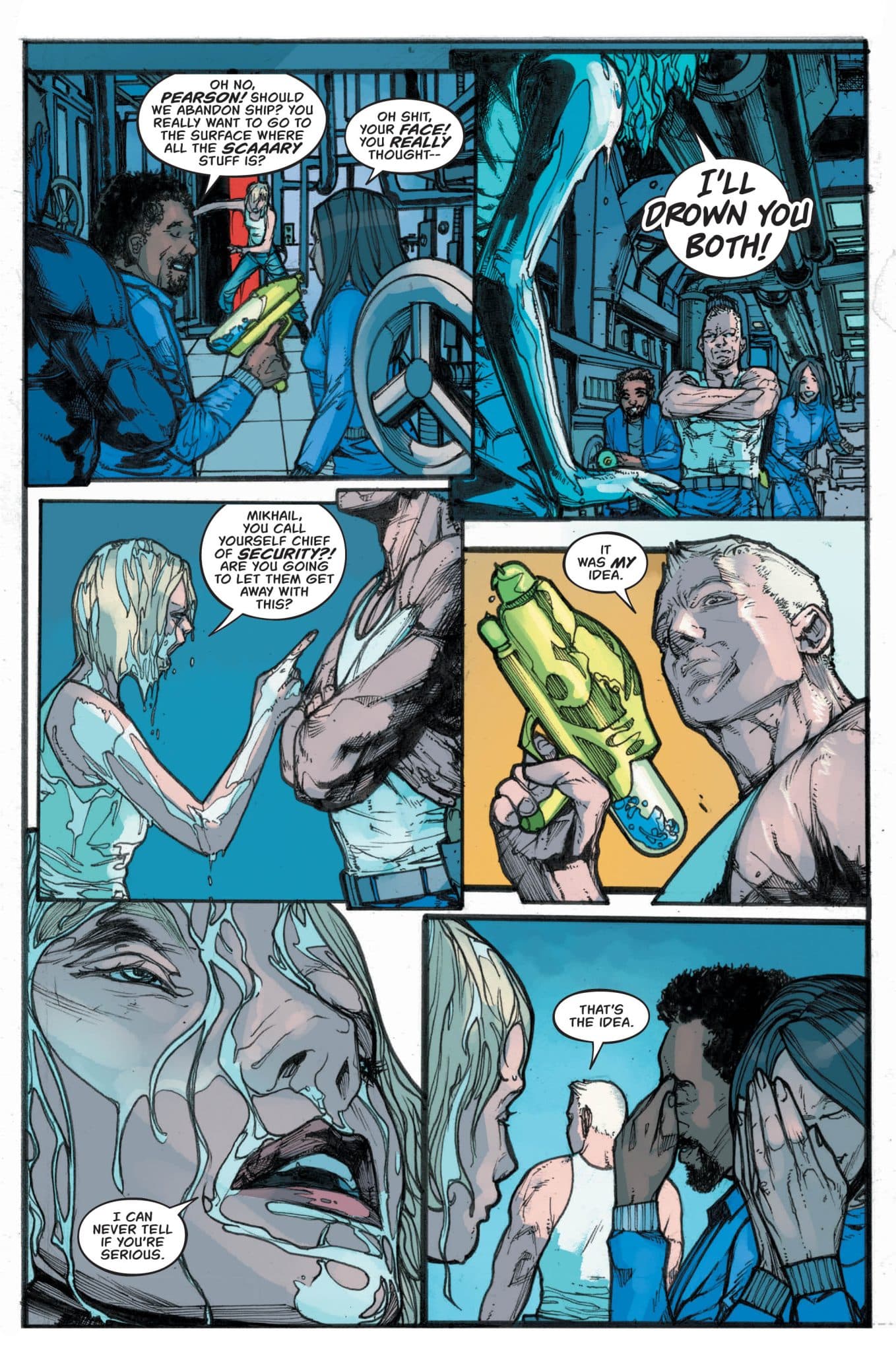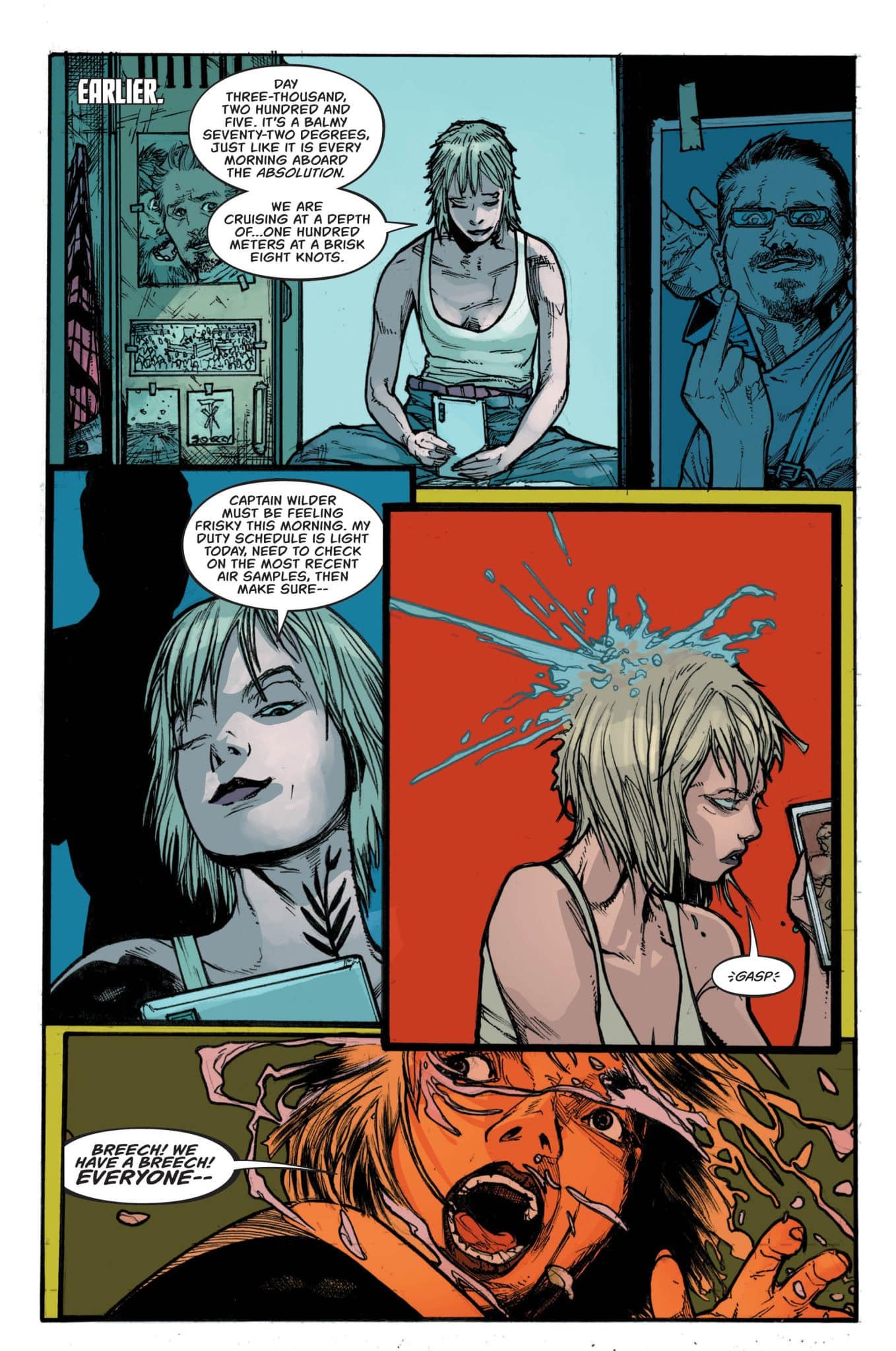 Two brothers locked in a sibling rivalry wrestle for command of a massive nuclear submarine, The Absolution, in a near-future irrevocably altered by climate change. Chief Science Officer Liana Pearson finds herself not only caught between the Wilder brothers, but drowning in her fear of the surface world. When something alien infiltrates The Absolution and upends the balance of power, Liana is left with only two deadly options–reaching the toxic surface world or steering the sub into the unforgiving abyss and crush depth–Breathe Deep!