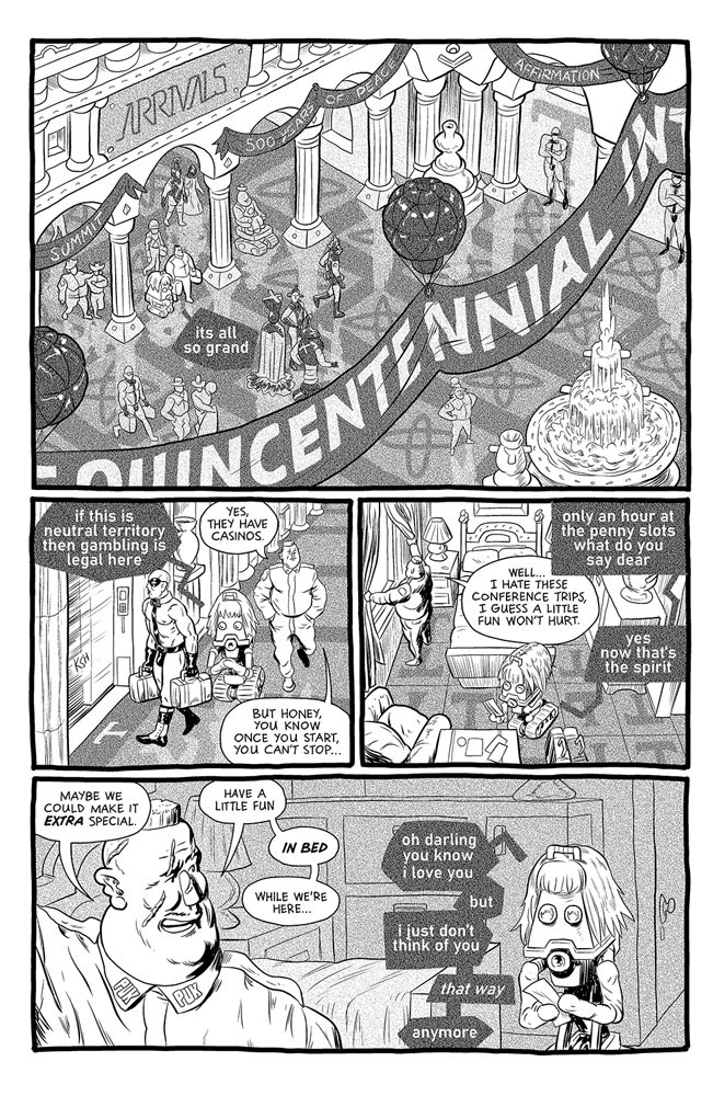 In Grip of the Kombinat, two megacorporations wage an eternal tug-of-war for the ruins of our future solar system. Pulpy action, escalating unintended consequences, wry satire, and pure tomfoolery combine into seven potent chapters of comics entertainment.
