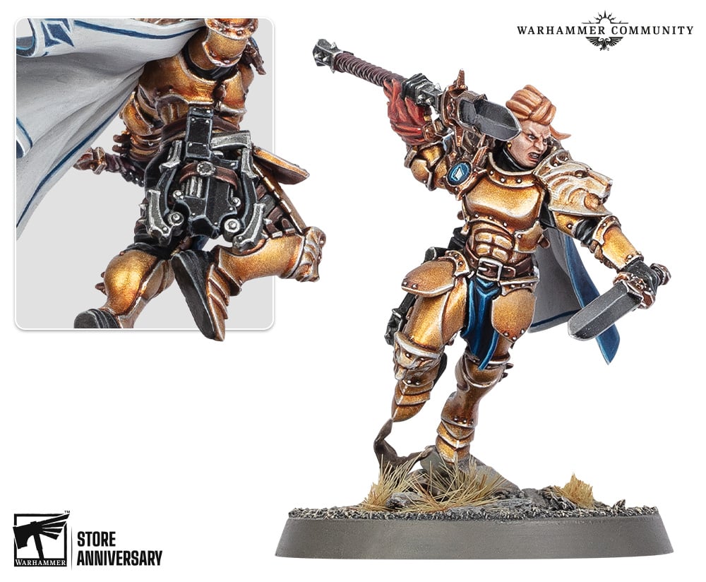 Estenna of Brighthall is a Knight-Zephyros , ready to mete out Sigmar’s wrath. Clad in sleek Thunderstrike armor the figure is armed to the teeth and ready to strike.