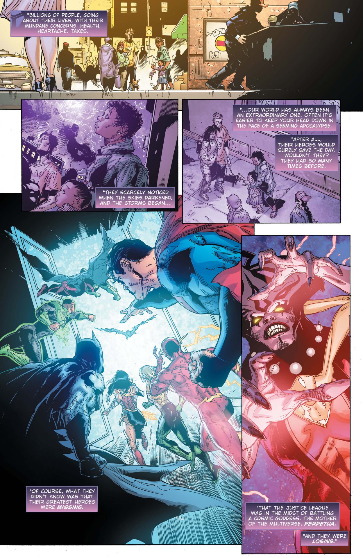 The main chunk of the comic is made up of the “Fall of Earth”. The story goes into detail exactly what happened. While it skips some of the lead up it’s the perfect read for those who want to know what they missed. In goes into so much detail it spoils the first three issues of Dark Nights: Death Metal as well. It’s the Cliff’s Notes version of the event and when I got to the end, I felt like I had a good grasp as to what was going on and the why. None of it was Earth-shattering (pun intended) but I feel like I have a bit more of a grasp as to what’s going on now.