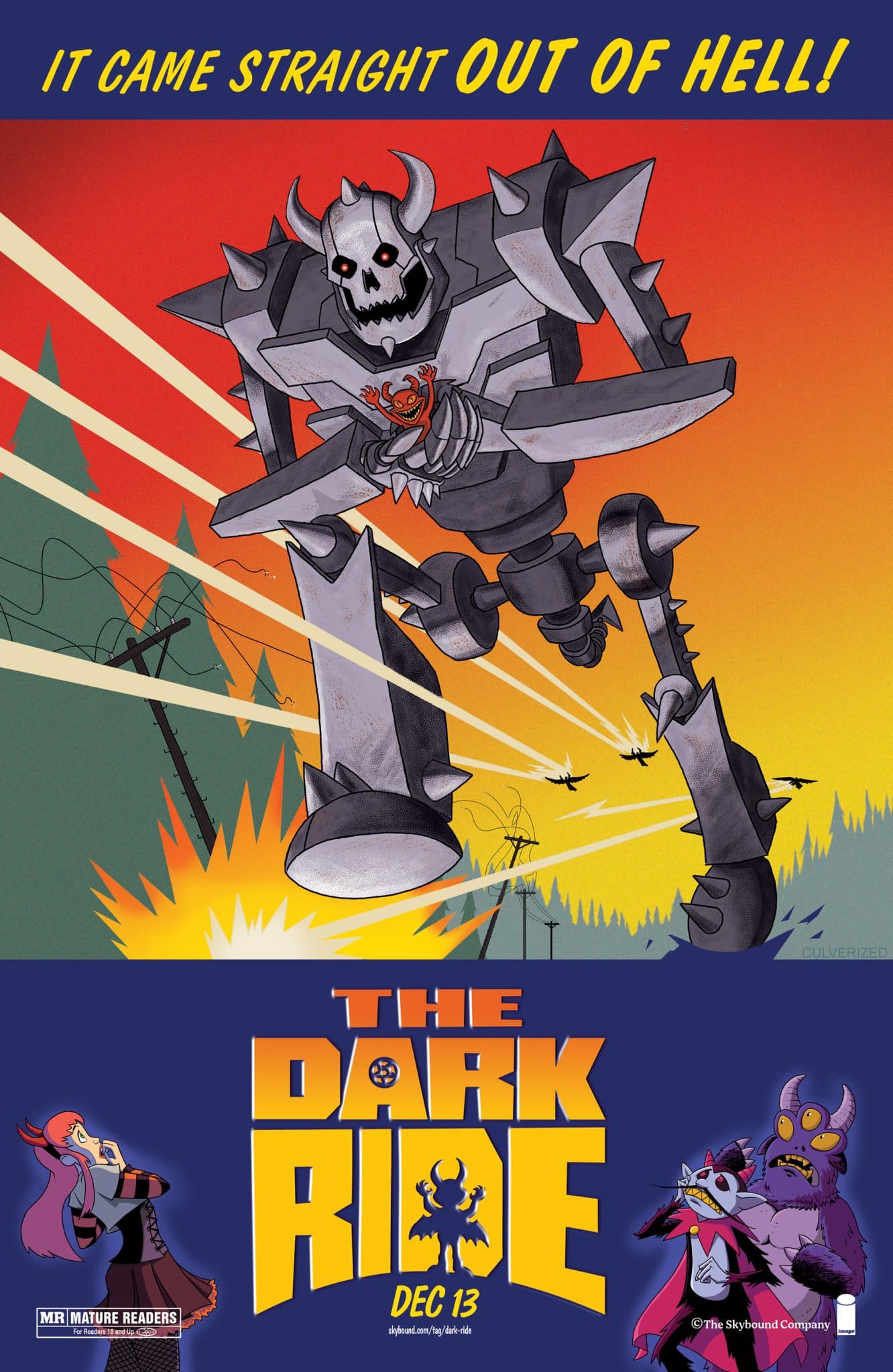 Additionally, megastar creator Tony Fleecs continues art directing the classic homage poster variant program that has run throughout the course of the series. The 1:25 incentives now span the Cover D slot of Dark Ride’s third arc, with Jay Fosgitt at the helm for issue #12.
