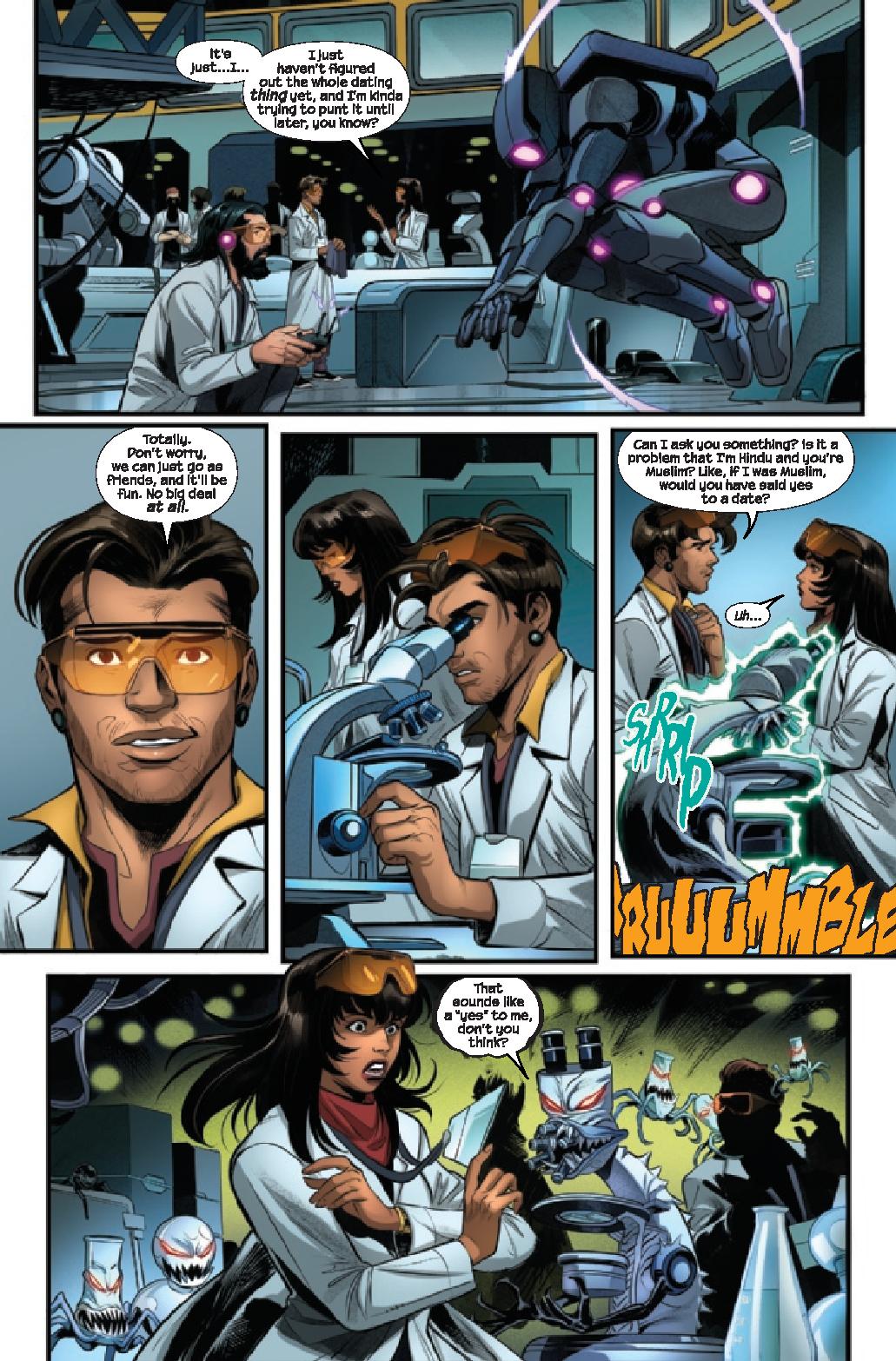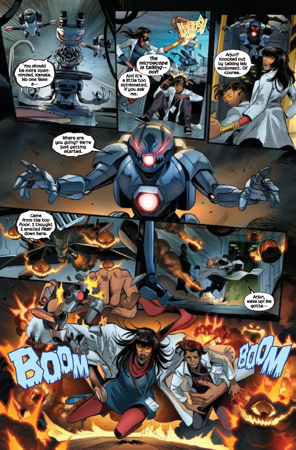 Writer Sabir Pirzada takes the series in an unexpected direction as Ms. Marvel’s time in Limbo is rather short. Instead the comic mostly has her battling a group of villains, The Inventors, who I have no idea about. But, you don’t really need to. What’s fantastic about these two issues are that they can be enjoyed by themselves with their tie-in to Dark Web tenuous at best. There’s all sorts of weirdness going on but Kamala’s interaction with the other heroes or event at large is minimal. Though, the issue delivers its best moments following the story of Kamala’s mosque which has come alive and now going… somwhere.