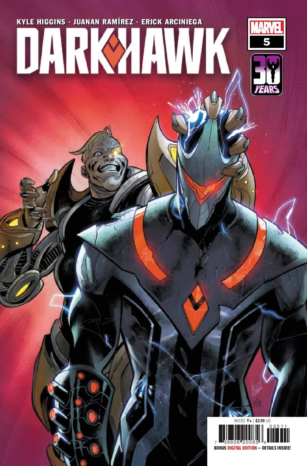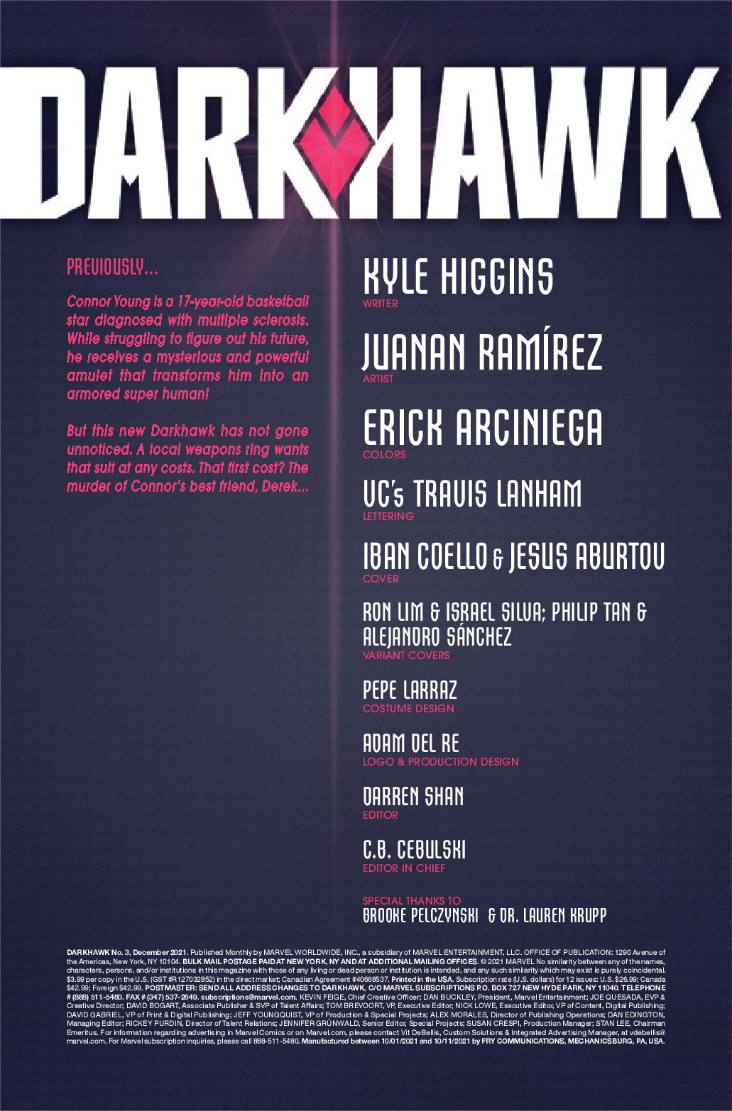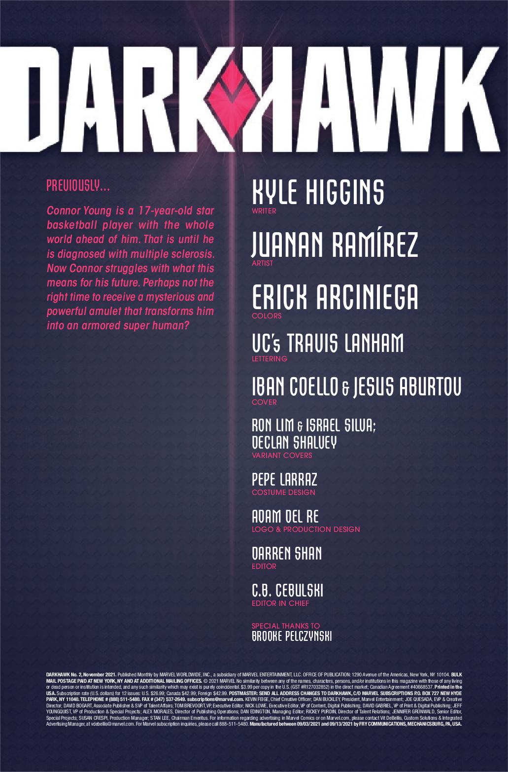 Kyle Higgins and Juanan Ramírez start a new era of an all-new Darkhawk in Darkhawk #1. Connor Young is a seventeen-year-old star basketball player with the world ahead of him, until a surprising medical diagnosis changes everything. But what happens when a mysterious amulet finds him and gives him powers beyond belief? What will he do with these new abilities?