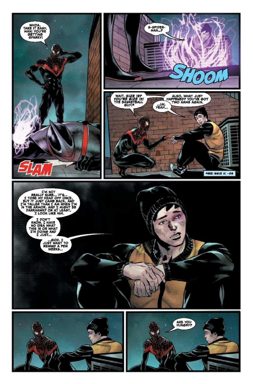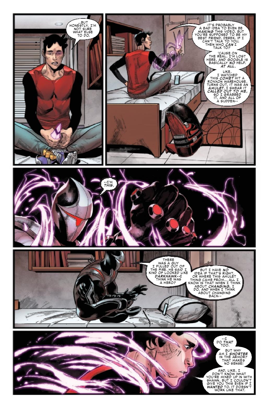 Connor Young’s only been the new Darkhawk for two whole minutes, and already he’s not sure the super hero life is for him. But will he feel the same way when he meets Miles Morales and Steve Rogers?