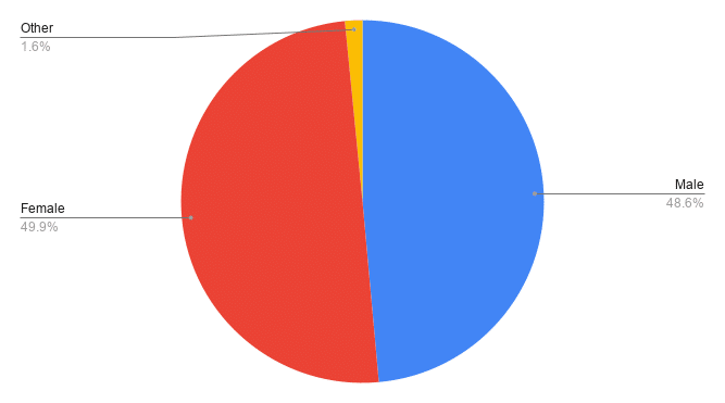 Men remained the majority making up exactly 50%. There were drops in the population across the board with men down 1.2 million, women down 1.65 million, and “other” down 350,000.