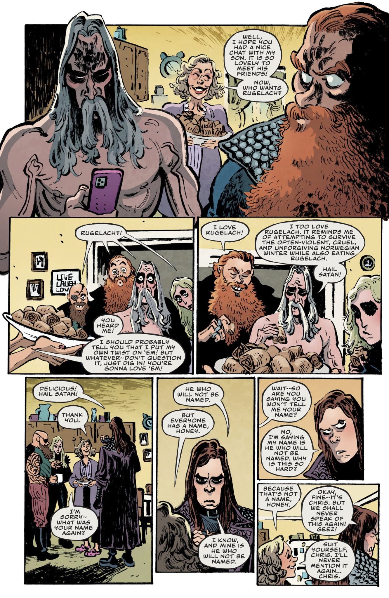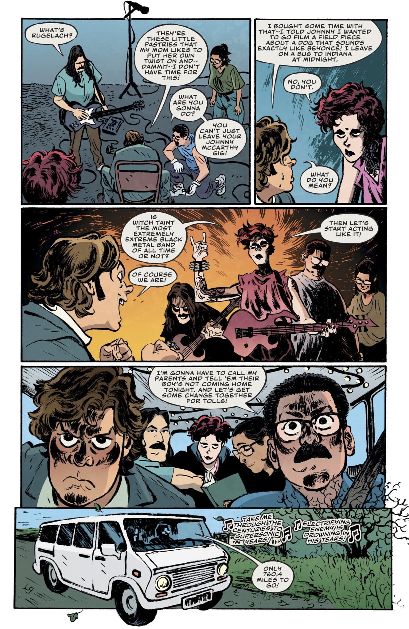 And that’s part of what’s fun about the comic. Not only does it poke fun at Black Metal but also the story as a whole with an exaggerated delivery that makes it all come off as one long setup by a comedian and now we’re waiting for the punchline. It’s a comic built on extreme punctuating and emphasizing that at every chance it gets. The result is a comic that’s a comedic sendup but also a love letter to Black Metal and especially Norwegian Black Metal (we’re fully expecting a forest to come into play here).