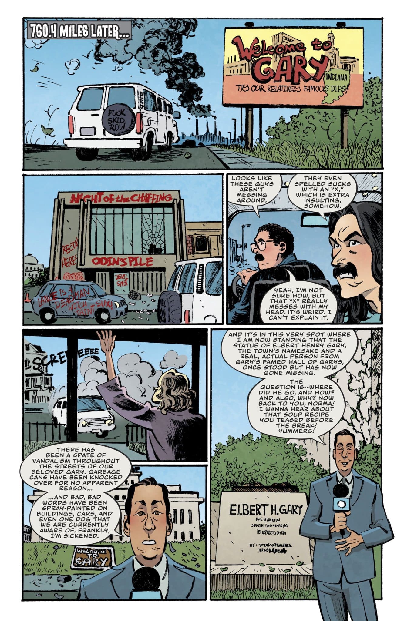 GARY, INDIANA, MUST BE DESTROYED! From writer Dave Hill (Tasteless Nudes) and artist Artyom Topilin (EC’s Cruel Universe), one man’s insane but all-too-true autobiography finally gets to the good stuff: all of the axe-swinging violence!