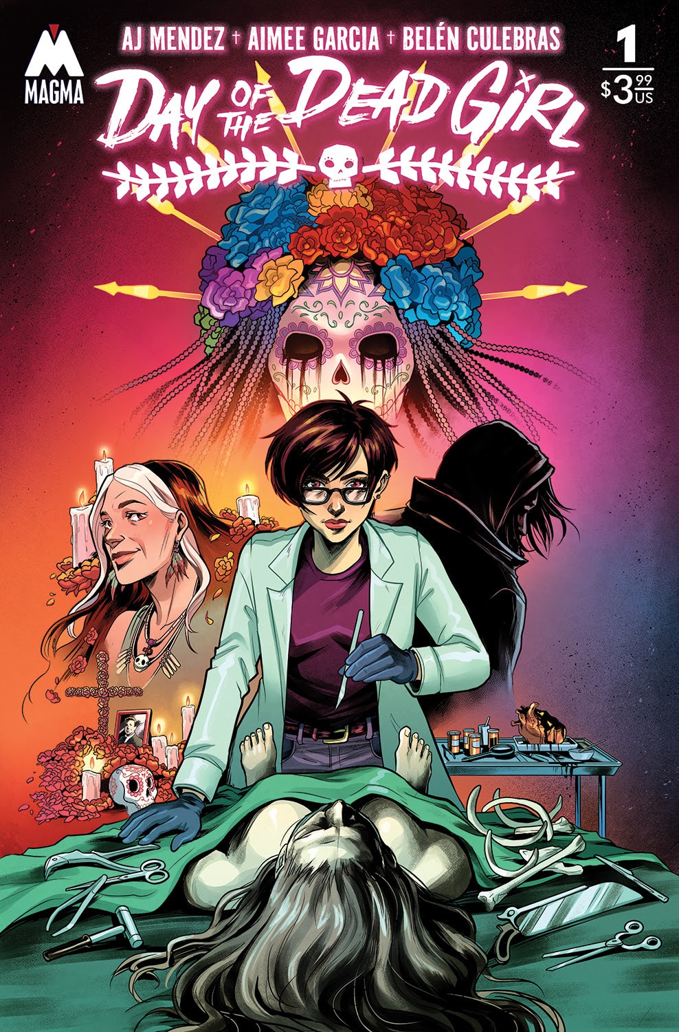 Death is never the end of the story. Coroner Sam Castillo will learn this the hard way, when a supernatural serial killer targets her hometown just as she moves back. Day of the Dead Girl sees its collection out this week and you can exclusively read the first issue right here! The series is by A.J. Mendez and Aimee Garcia with art by Belén Culebras, and published by Magma Comix.