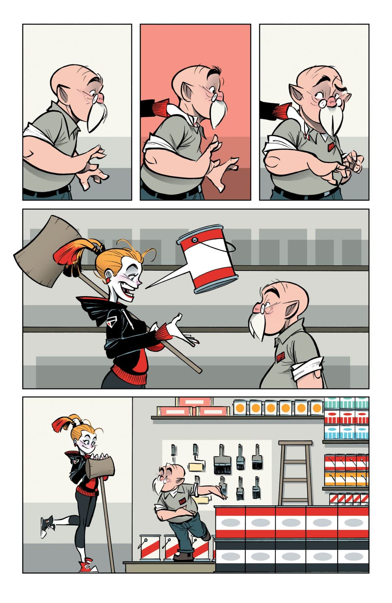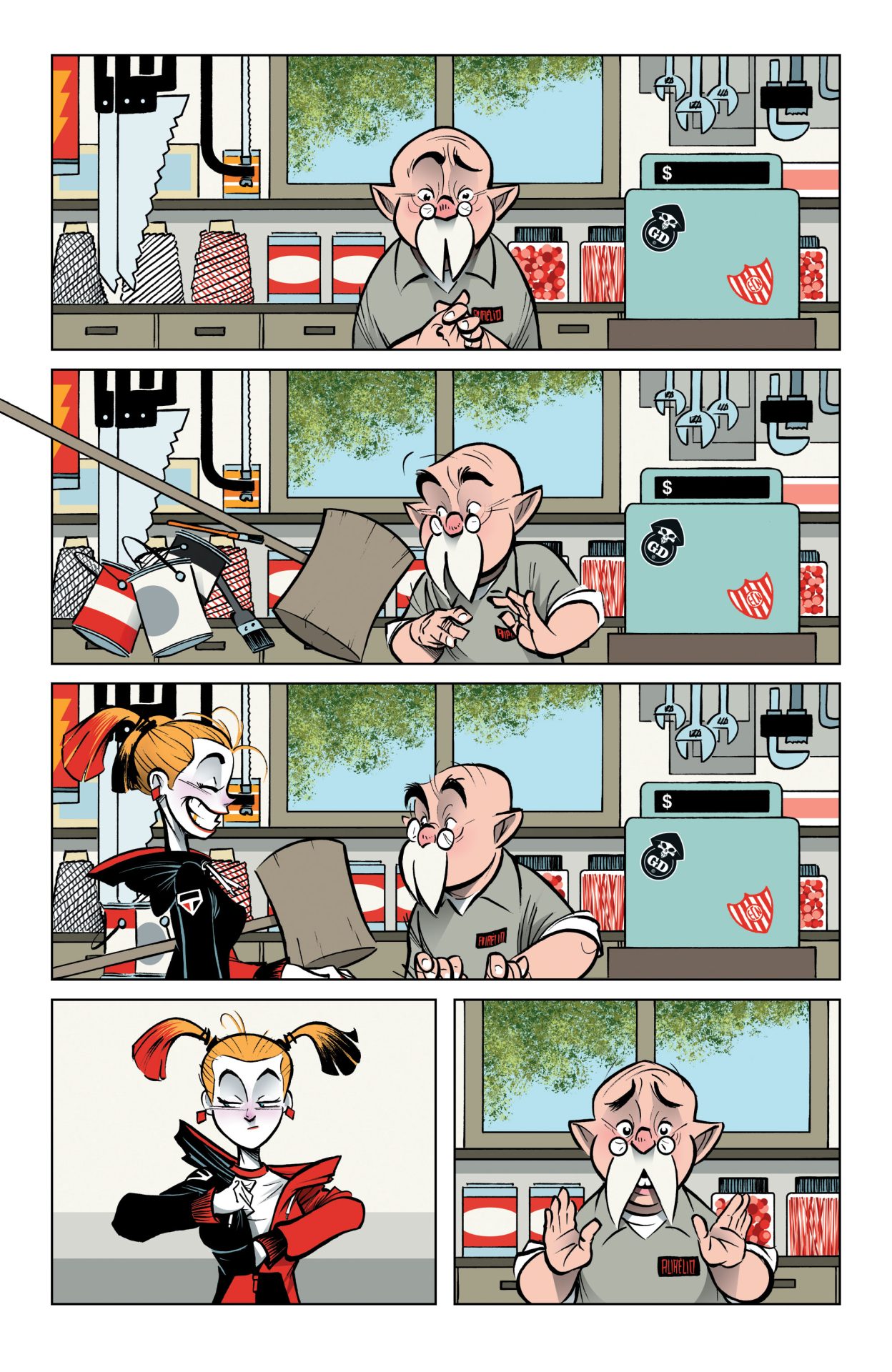 Gustavo Duarte brings his style of humor to the DC Universe in six short stories featuring funny moments in your favorite superheroes’ lives! Where does Harley buy her mallets? What happens to Superman’s radioactive clothes? What’s a day off like for Cyborg? Be sure to check out this entirely silent comic!