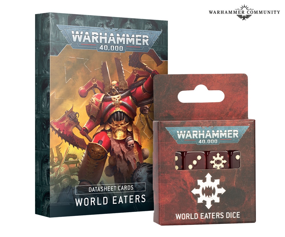Khorne will show its blessing upon you with the World Eaters Dice and Datasheet Cards. The card pack features 35 quick reference cards cover your primary Army Rule, Datasheets, and Combat Patrol rules. Lend each and every dice roll a murderous with a set of 16 dice which are, cast in gem-effect red, with cream ink and the World Eaters faction icon on the six face.