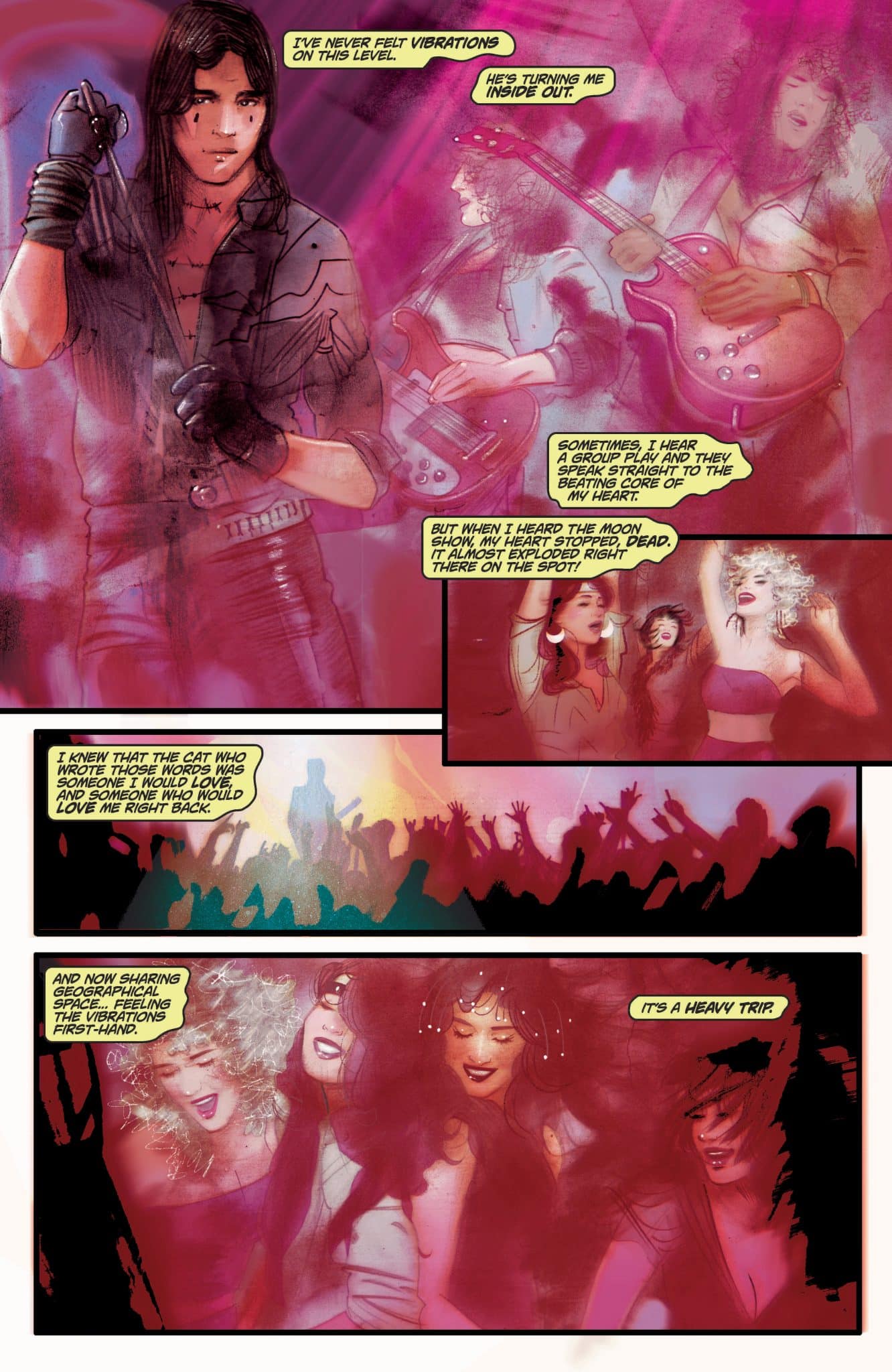 On a wild night out at the Fox Club, the coolest, hottest, and wildest girls on (or off) the Strip meet the edgiest up-and-coming band in town, and sparks fly. The Moon Show’s stardom is about to rise as they celebrate getting signed to the legendary Asmodeus Records. As the story unfolds, the excited groupies head on tour with the band – living the dream – but their tuned-in and dropped-out idyll is about to unravel. Something dark is pulling the strings, and the girls are about to discover the true cost of rock and roll.