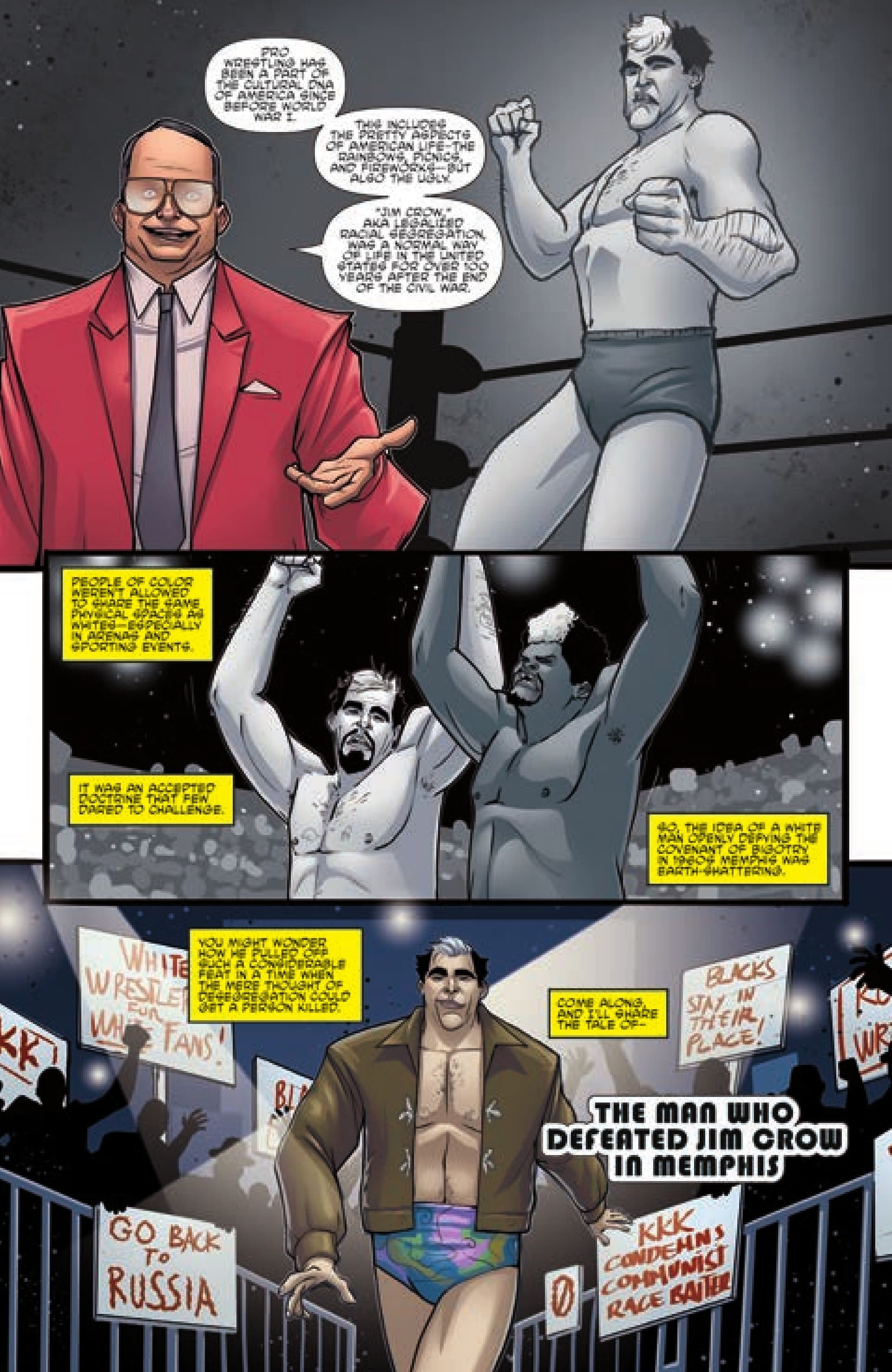 Pro-Wrestling’s secrets and greatest moments are immortalized in this graphic novel from legendary wrestling personality Jim Cornette. A true-story style anthology, these insider tales will show the lengths that wrestlers went to uphold “kayfabe” (the old carny term for the presentation of legitimate conflict), as well as the noteworthy cultural, racial, and economic effects these events and characters had on society. This is the graphic novel that old school wrestling fans have been waiting their entire lives for: a no-holds-barred representation of the moments that wrestling insiders couldn’t talk about for years.