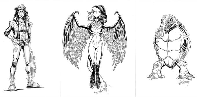 ML: No, there isn’t really anything behind the different humanoid animal species. They’re not supposed to parallel any human ethnic groups of today or cultures. The one difference, though, is they’re all mammals. You won’t see humanoid birds walking around or anthropomorphic reptiles.