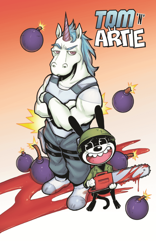 Tom and Artie is about two interdimensional best buddy mercenaries from different worlds. Each contract they take is a wildly different zany adventure as they meet strange and interesting characters to fight and trick. Written by Robert Livingston Edited by Mike Stevens Art by Zhao Chunlin Lettering by Micah Myers