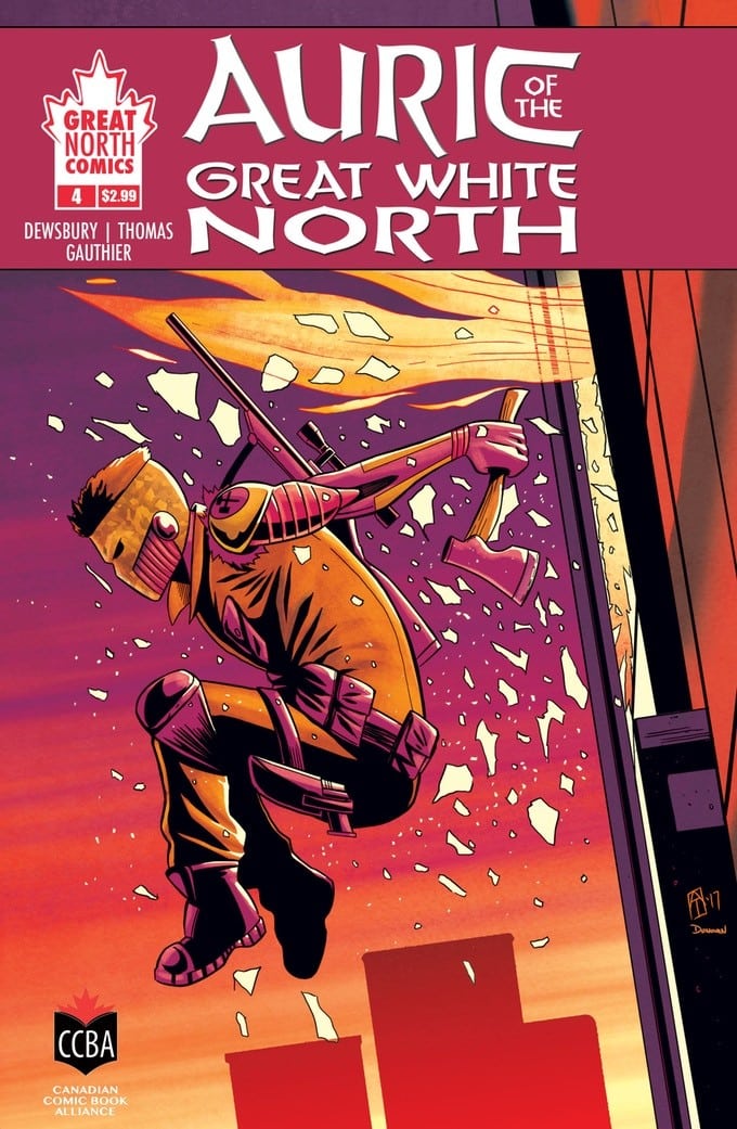 Great North Comics is currently in the midst of a Kickstarter to print Auric of the Great White North #4, the latest issue of their comic series. Written by Davis Dewsbury, with art and letters by Andrew Thomas, colors by Sharon Gauthier, and cover colors by Donovan Yaciuk.