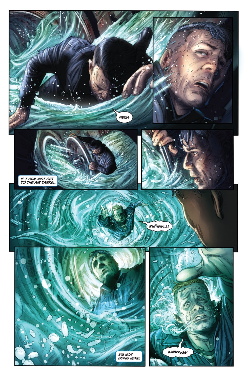 New York Times best-selling writer Robert Venditti (Superman ‘78, Green Lantern) and powerhouse artist Doug Braithwaite (CONAN, JUSTICE) crank up the heat in this non-stop, action thriller that’s ready to blow! 617 feet below sea level: captured and left for dead! American operative Trent is bound inside the foundering hulk of the Akula-class submarine turned ticking time bomb. With mere minutes before the hull implodes, Trent must convince Stepan, the vengeful Russian sailor who vowed to bury him, of a deadly truth: the Turgenev isn’t freighting oil, but a covert stockpile of nuclear weapons. Now, the two enemies must set aside their personal war and navigate a gauntlet of crushing depths and lethal predators in the world’s most hostile environment if they’re going to escape to the surface and put a stop to a plan that could trigger global armageddon.