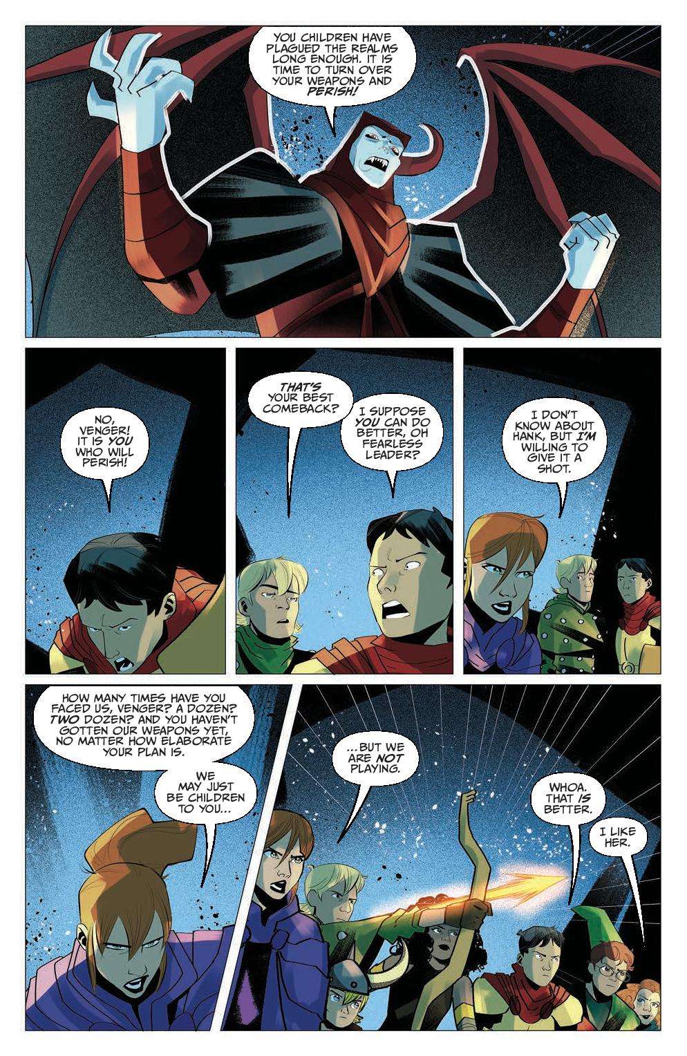 Noble ranger Hank, intrepid acrobat Diana, quiet thief Sheila, impulsive barbarian Bobby, fearful cavalier Eric, and uncertain magician Presto only want to get back to their own world. But escaping the Realms has turned out to be much harder than getting there! Danger lurks at every turn, the enigmatic Dungeon Master is less than helpful, and Venger—the force of evil—will stop at nothing to get his hands on the magical weapons that the kids have come to rely on. To top it off, Hank has made a startling discovery: Despite the dangers, Sheila, Bobby, Diana, and the others aren’t so sure they want to go home after all!
